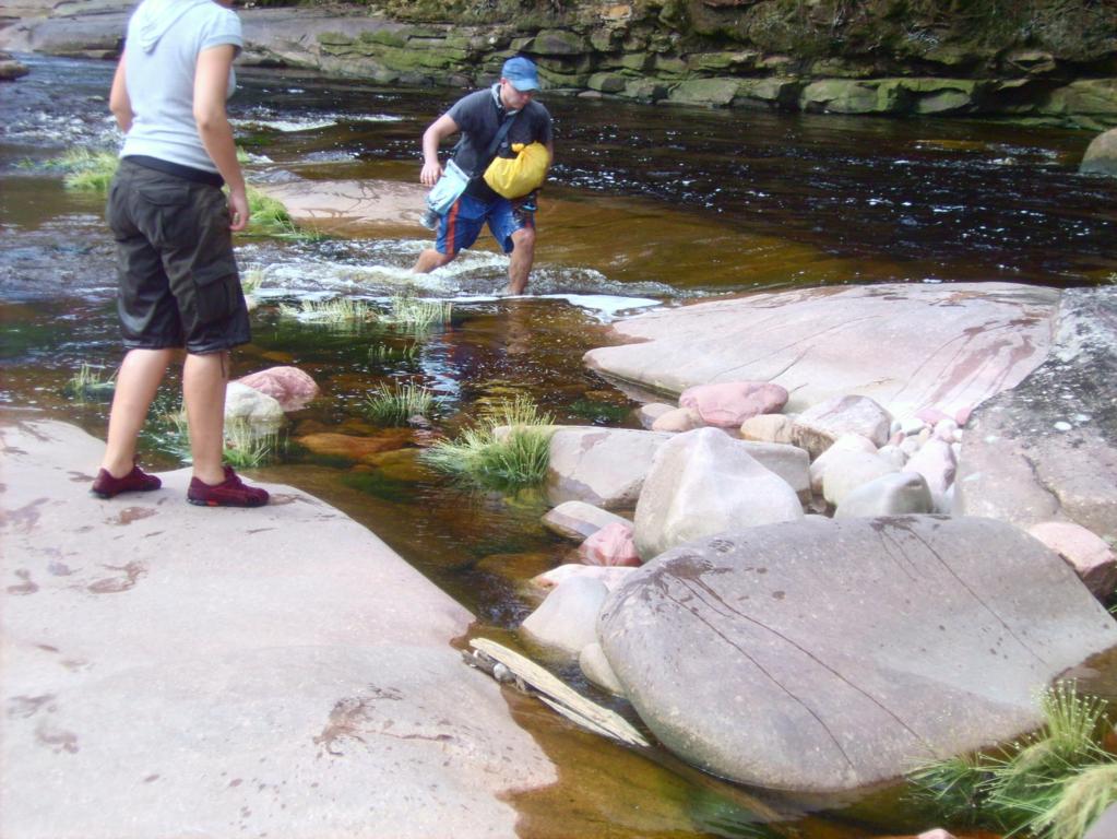 Przewodnik prowadzi wzdłuż rzeki do miejsca, gdzie można bezpiecznie przejść na drugą stronę. Nurt wartki, trudno utrzymać się na nogach, chociaż woda sięga niewiele powyżej kolan. Przechodzimy brodem pomagając sobie wzajemnie.