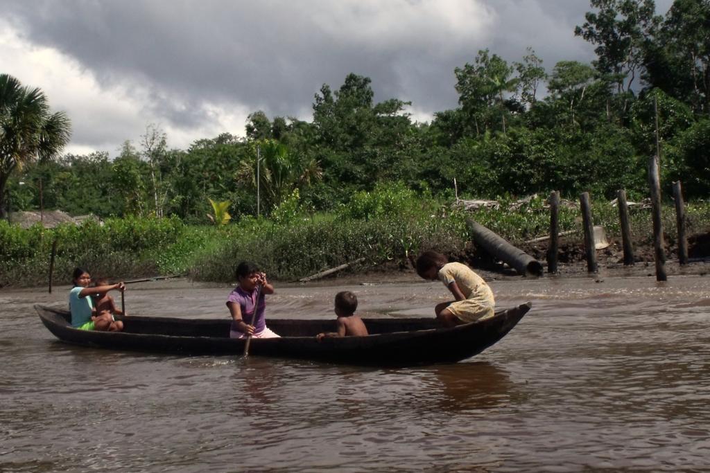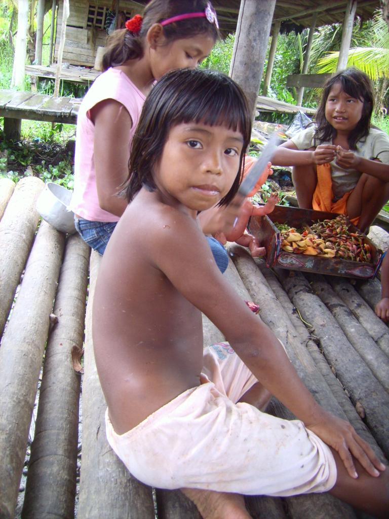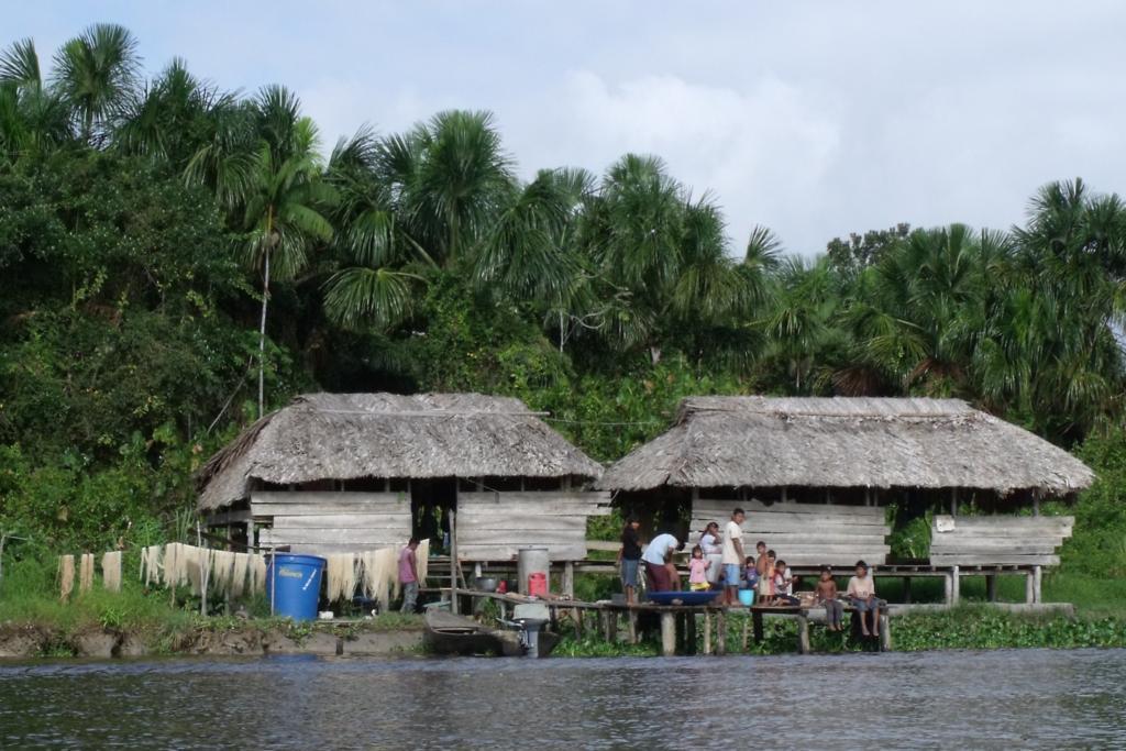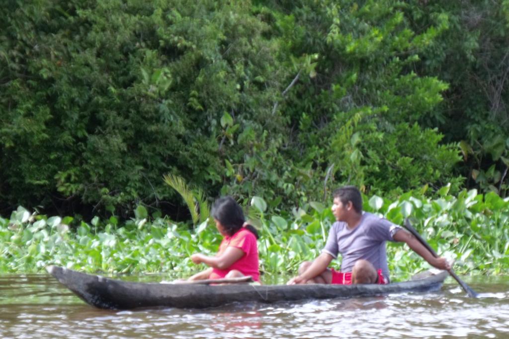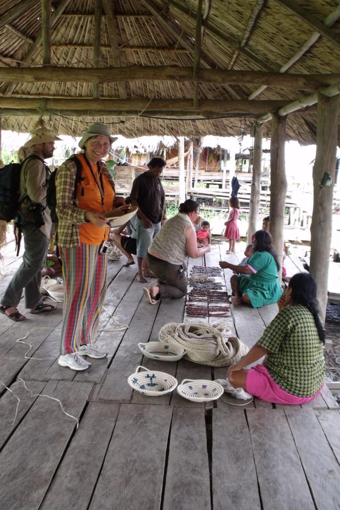 Po śniadaniu (nieco opóźnionym z powodu łapania ryb przez obsługę), płyniemy na zwiedzanie wiosek indiańskich