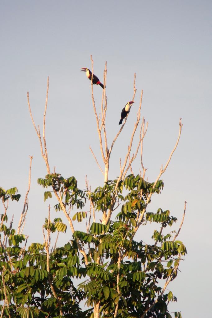 Koło 18 wracamy do obozu. Sielanka kończy się z chwilą zatrzymania silników łodzi i przybicia do schodów przystani. Chmara komarów! Upierdliwe, jak diabli! Rywalizują o miejsce żerowania z meszkami, które również się do nas dobrały. Smaruję i psikam się „muggą”, ale pomaga tylko na jakieś 10 minut. Środek może i skuteczny, ale tak średnio na tutejsze owady... Nocleg w hamaku pod moskitierą, przy odgłosach dobiegających z głębi dżungli i bliskiego brzęku komarów usiłujących się najeść...