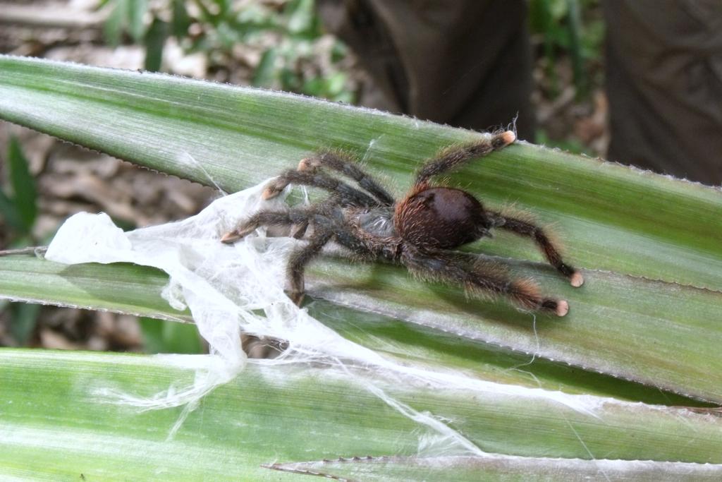 Drugi postój, a właściwie – zwiedzanie, mamy na małej wysepce w delcie. Oglądamy tam wielkie pająki – tarantule. Są całkiem sympatyczne – włochate, nie agresywne. One nas również sobie pooglądały patrząc się tymi okrągłymi,czarnymi, zdziwionymi oczkami. Były trochę przestraszone i chyba, niezbyt zadowolone.