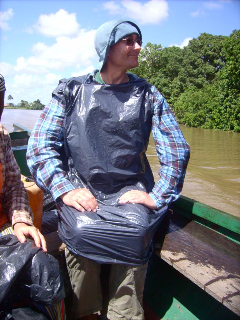 Te trzy godziny drogi wodą do Tucapita były ciekawe. Kierownik silnika motorówki dawał ile mógł. Strugi wody tryskały na boki, a co nie dało rady na zewnątrz łódki, tryskało na nas. Wreszcie znalazłem worek foliowy, który miał trzy otwory. Specjalnie. Było dużo lepiej...