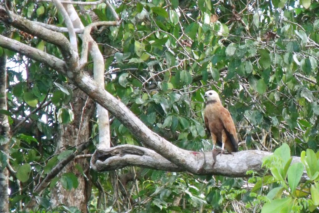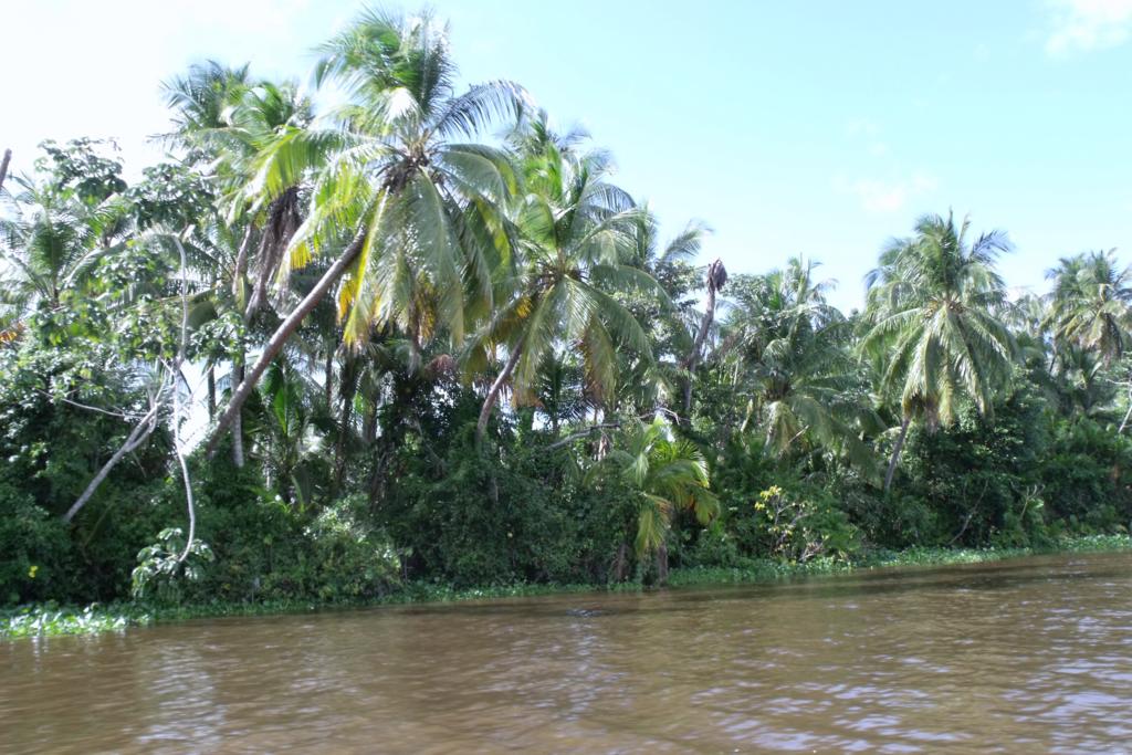 Przez jakieś dwie godziny pływamy po odnogach rzeki i podziwiamy faunę i florę. Szczególnie, to ostatnie, bo fauna z daleka słysząc silnik naszej łodzi zwiała w dżunglę. Ale cośmy sobie pooglądali, to nasze! Czasami udało się podpłynąć do ptaszków siedzących, tak wysoko, że czuły się bezpieczne i nie uciekały.
