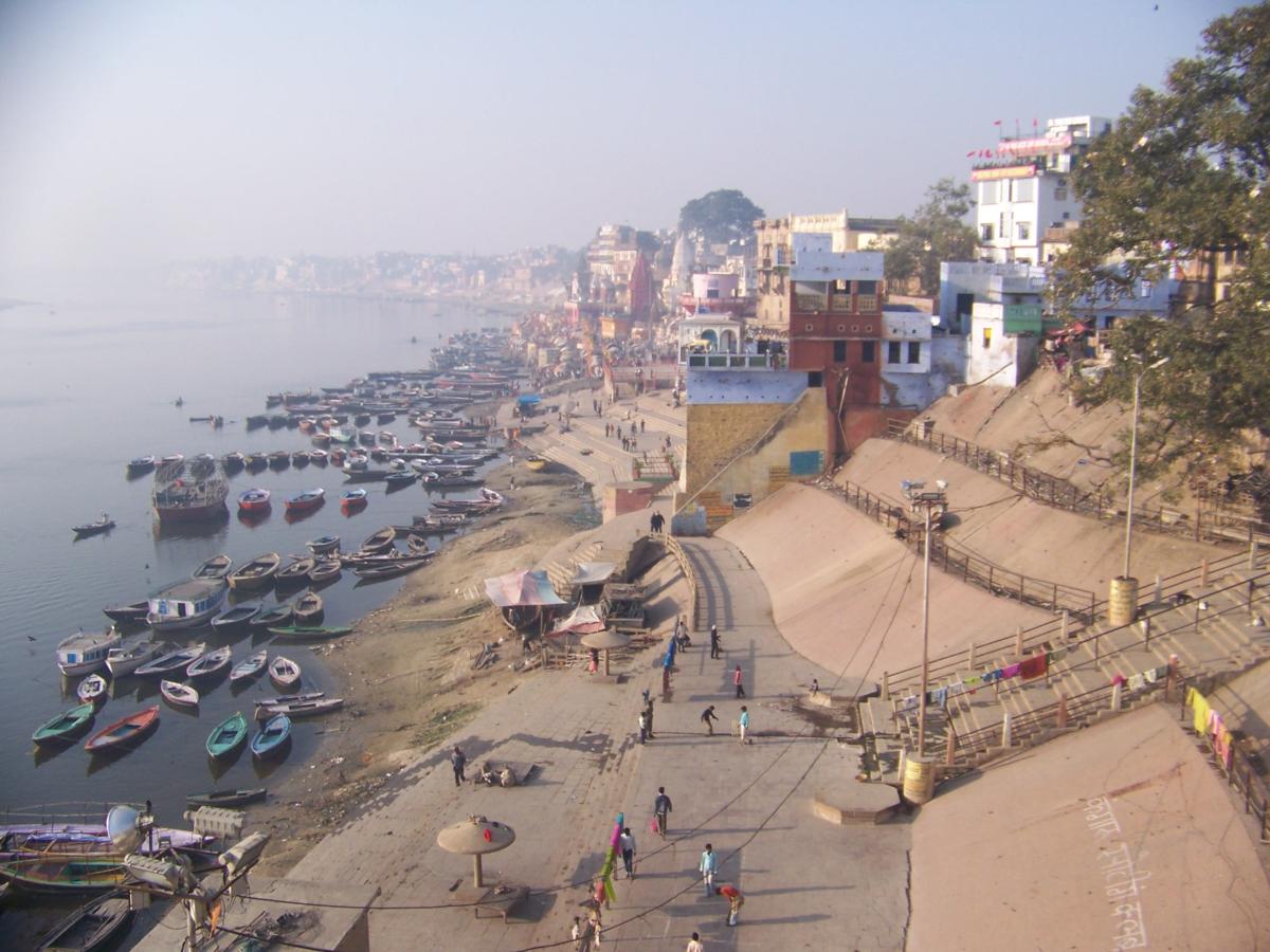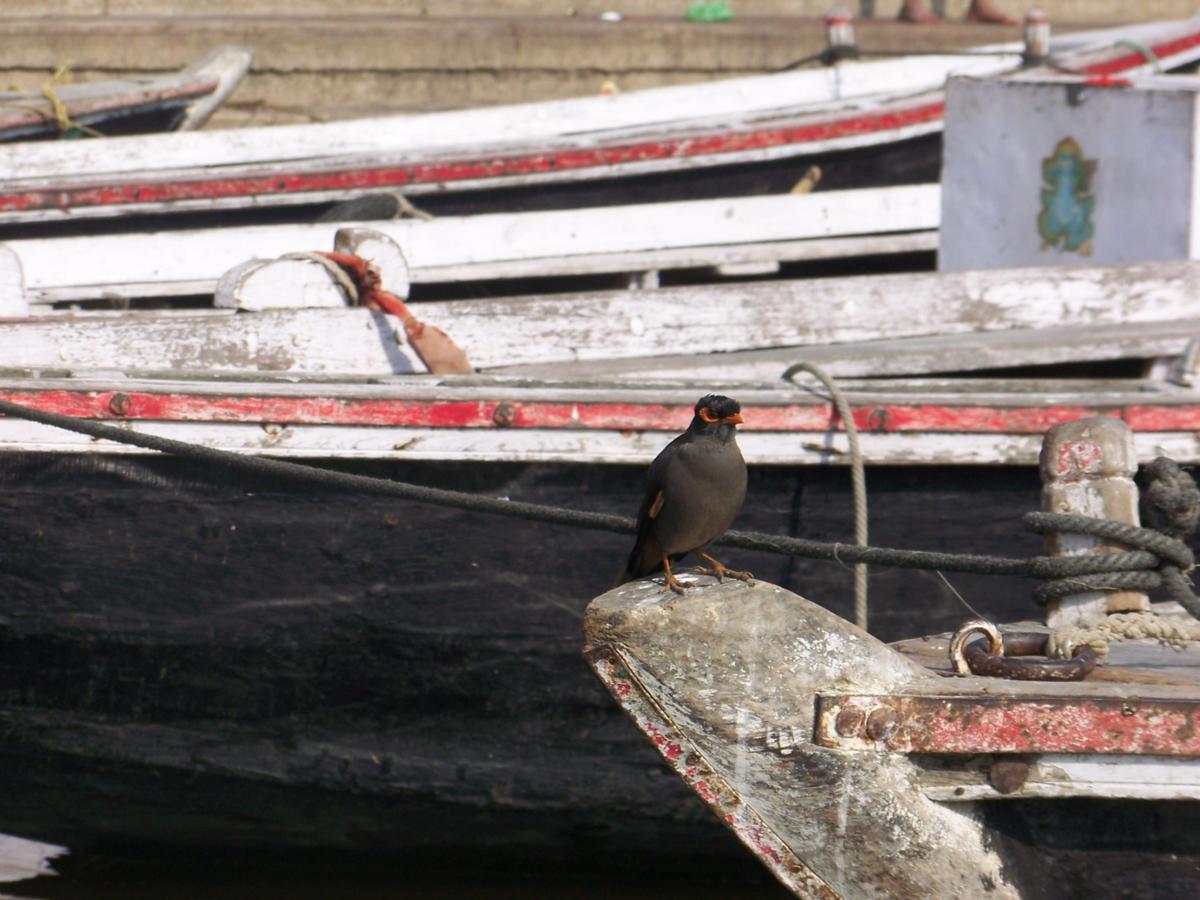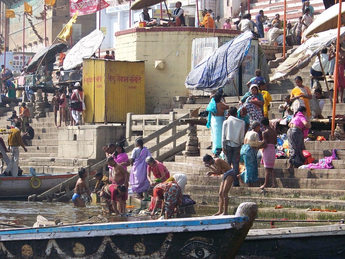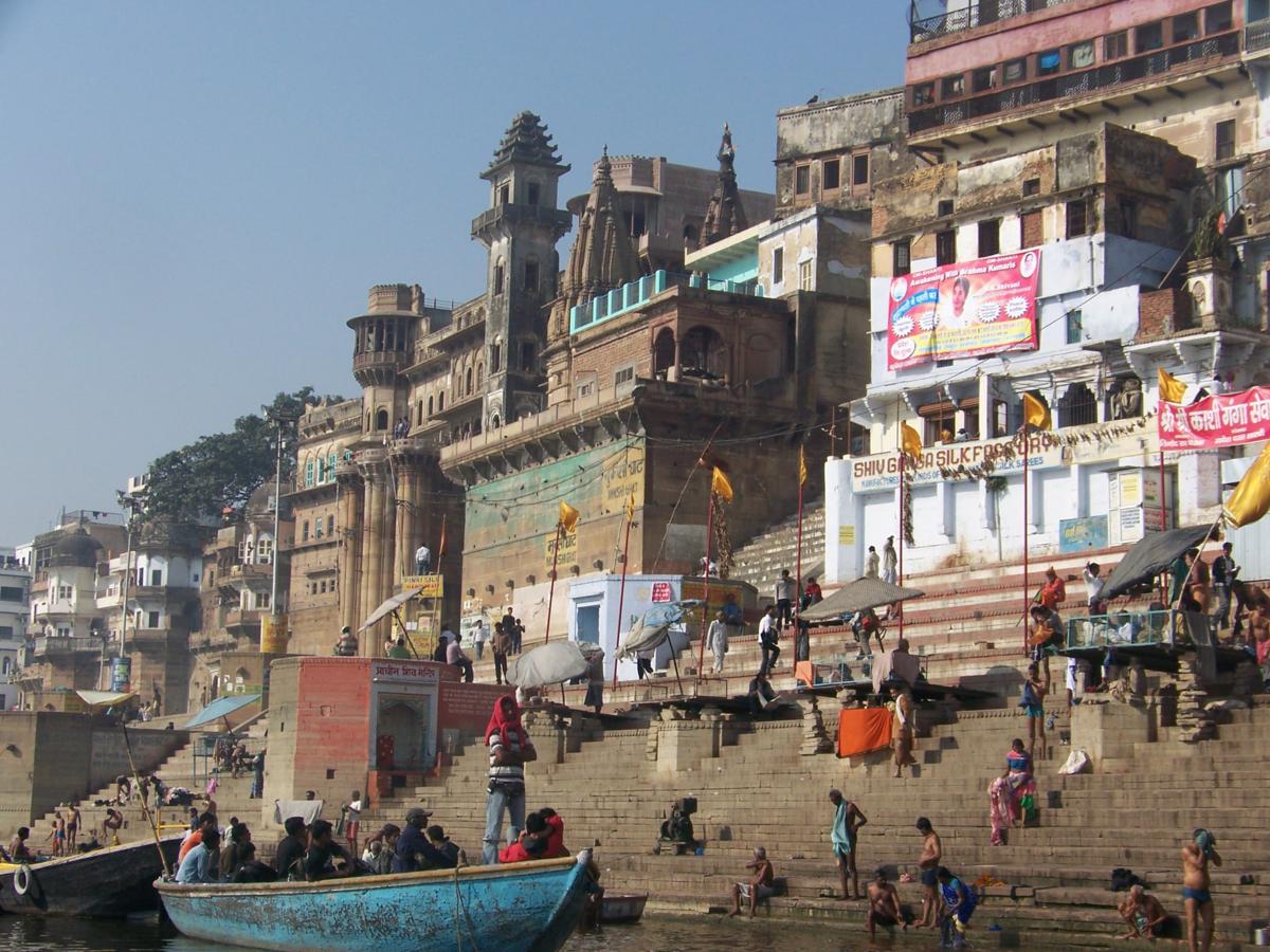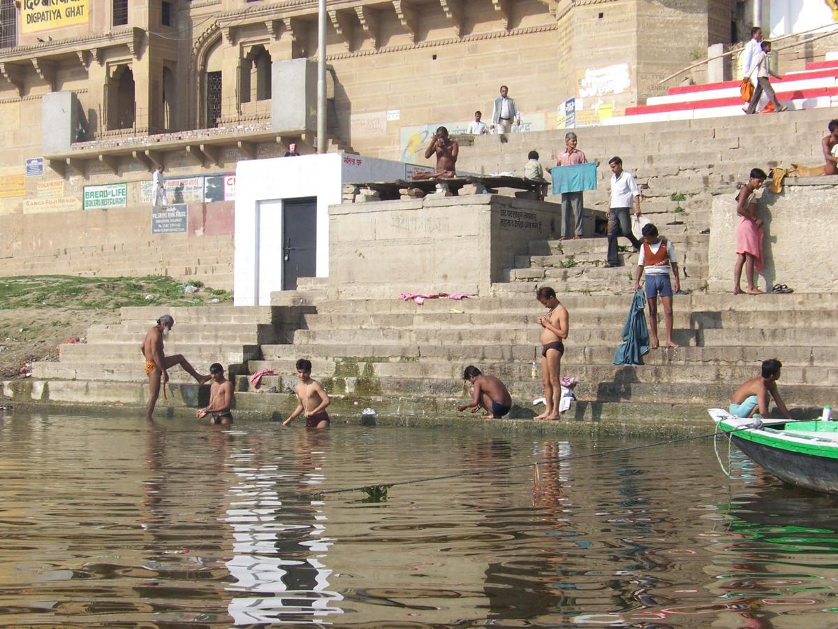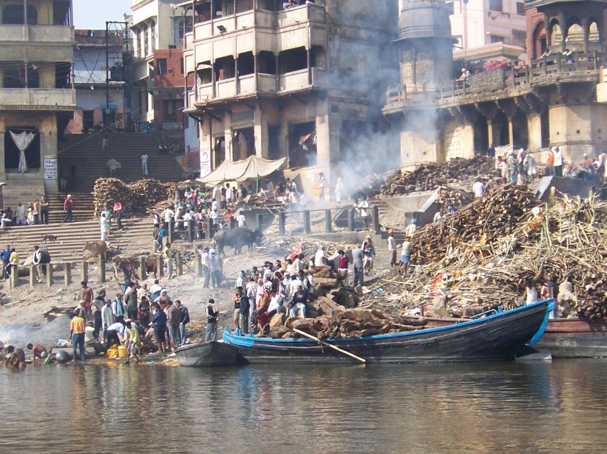 Opuszczamy pokój, zostawiamy plecaki przed recepcją, a sami na ostatni spacerek po Varanasi... Połaziliśmy troszkę po uliczkach i wylądowaliśmy nad Gangesem. Mamy dużo czasu, więc bierzemy łódkę na dwie godziny. Płyniemy... Jeszcze raz oglądamy panoramę miasta (podobno najstarszego na Świecie) płynąc w górę rzeki. Po powierzchni wody pływają różne śmieci. Wypatrzyłem nawet prezerwatywę - widać zabawa była przednia!!!