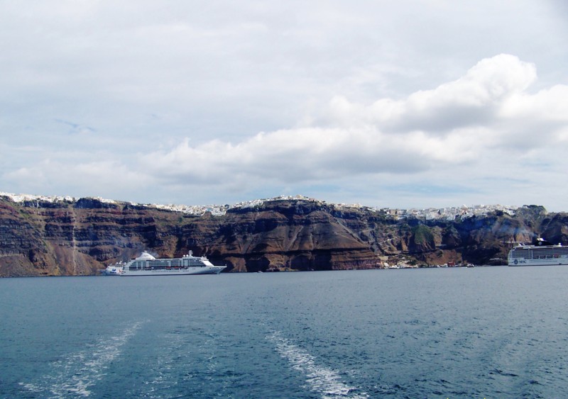 Kupuję bilet na prom i płynę na Santorini, jestem tam umówiona z Marzenką. Szczęśliwym trafem płyniemy tym samym promem. Marzenka ma grupę turystów, a ja robię za pasożyta tj. korzystam z darmowego zakwaterowania przy jej grupie oraz z hojnych poczęstunków miejscowych hotelarzy i restauratorów składanych oczywiście Marzence