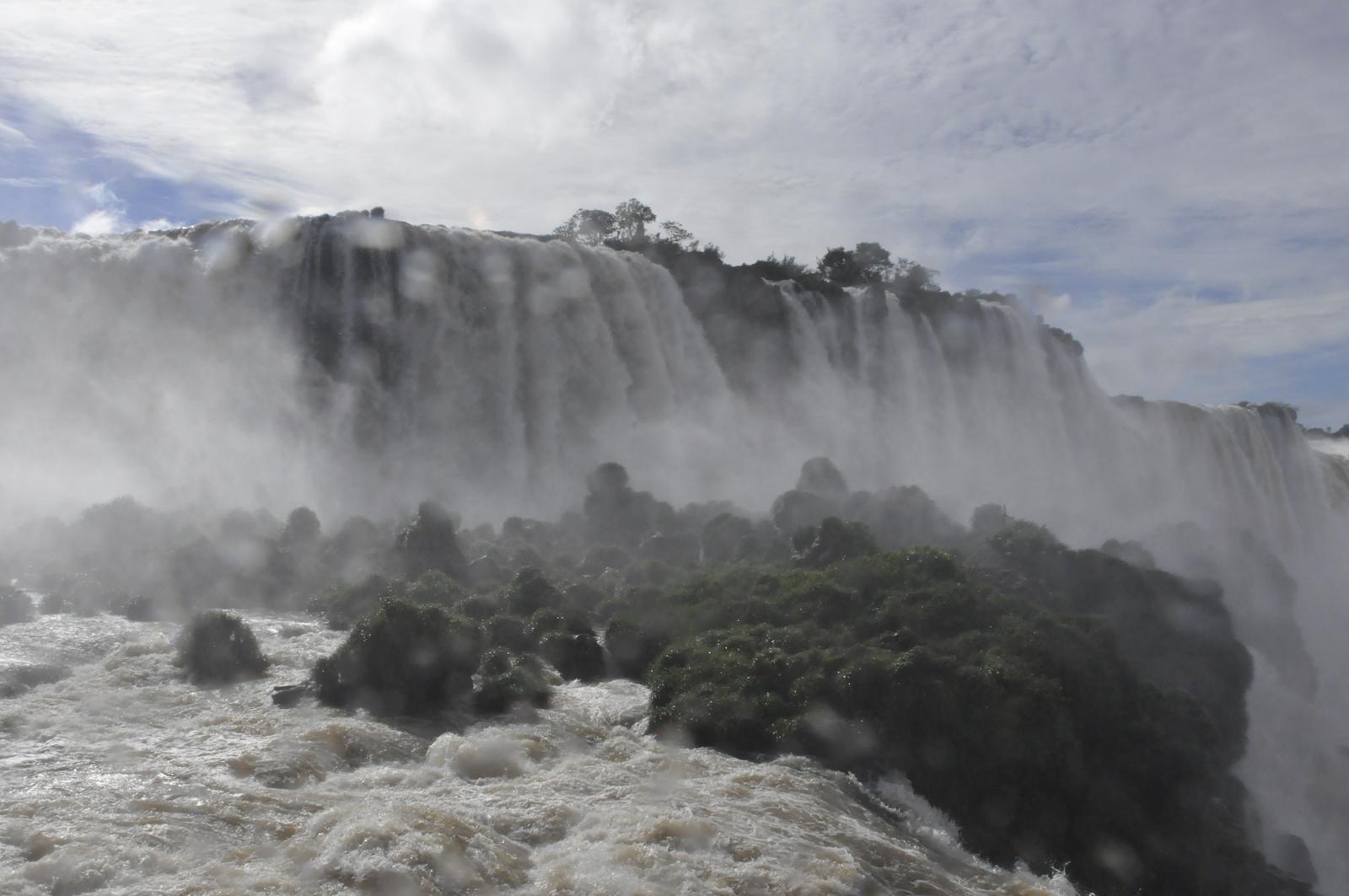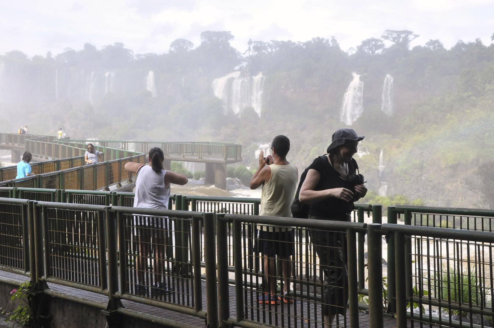 Załatwiamy sobie przez agencję turystyczną dowóz do brazylijskiej części wodospadów. Wstęp na teren parku 52 reale, za które można obejrzeć jedynie ogólnie dostępną ścieżkę. Przejście krótkie chociaż bardzo piękne. Widoki na wodospady oszałamiają, końcowa część ścieżki doprowadza bardzo blisko zespolonej ilości wodospadów. Po przejściu po pomostach, wszyscy wracamy przemoknięci od ogromnej chmury wodnej unoszącej się w powietrzu. Windą wjechaliśmy na górny taras, skąd mogliśmy podziwiać ten sam widok, tyle, że z oddali. Na tym skończyło się zwiedzanie brazylijskiej części wodospadów.