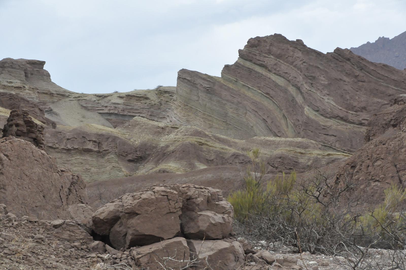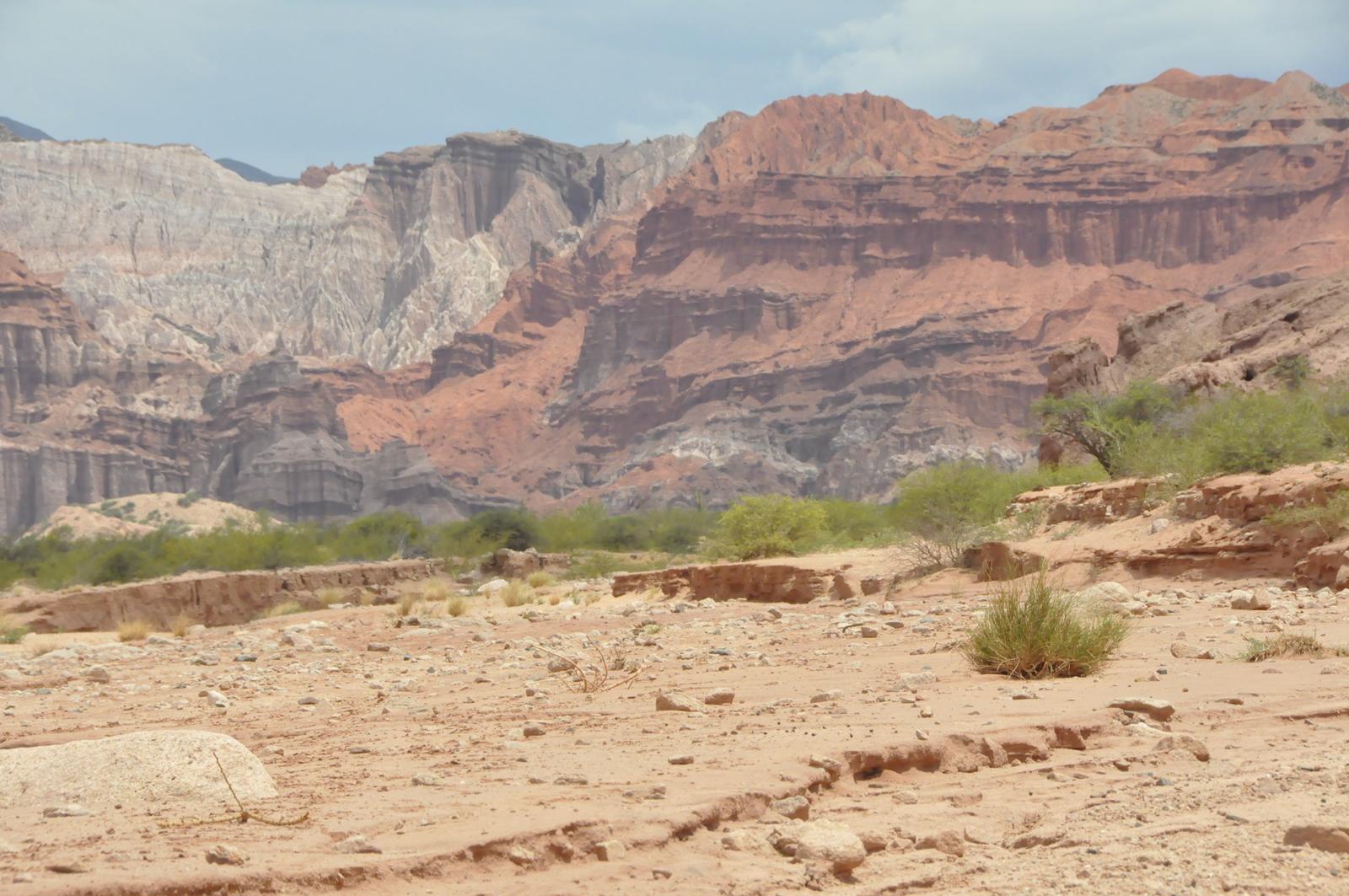 Park narodowy Quebrada de los Conchas to jedno z najniezwyklejszych miejsc jakie widziałam. Łańcuchy górskie są tutaj głównie w kolorze czerwonym, natomiast skały mienią się wszystkimi możliwymi kolorami. Najbardziej niezwykłe są zielono-żółto-filoletowe poprzeczne wtrącenia skalne. W czasie oglądania bardzo żałuję, że nie ma tu mojego kolegi Jacka, który rozkochany w geologii, miałby o czym opowiadać.