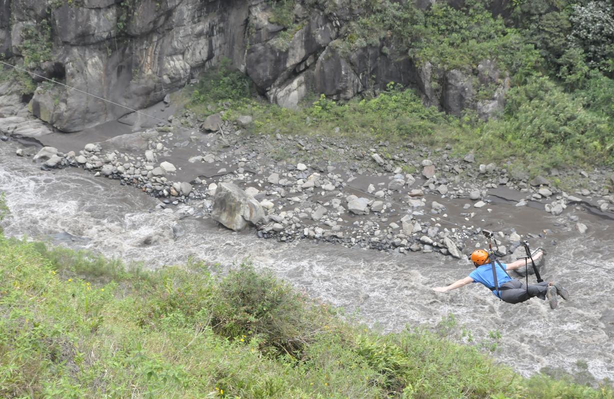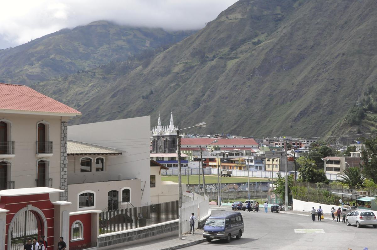 Baños (1820 mnpm) jest położone w dolinie otoczonej górami. Jeżeli w dolinie, to raczej normalne, że otoczone górami... Tyle, że tutaj góry są bardzo ciekawe. Wysokie. Czasami robią bum! Niestety, przed naszym przyjazdem wulkan Tangurahua (5023 mnpm) jakoś tak zaniemógł i przestał nawet dymić (drań pufnął 01 lutego – szykował się!).