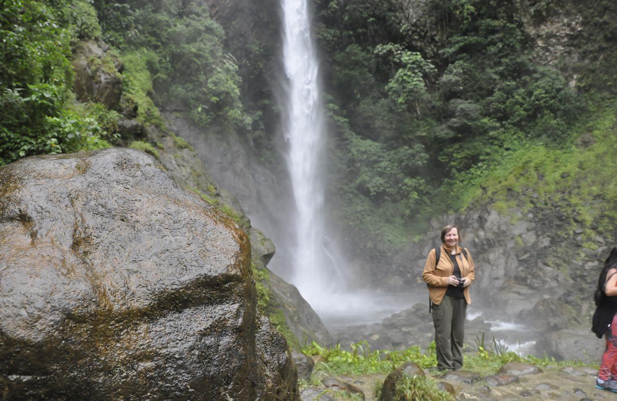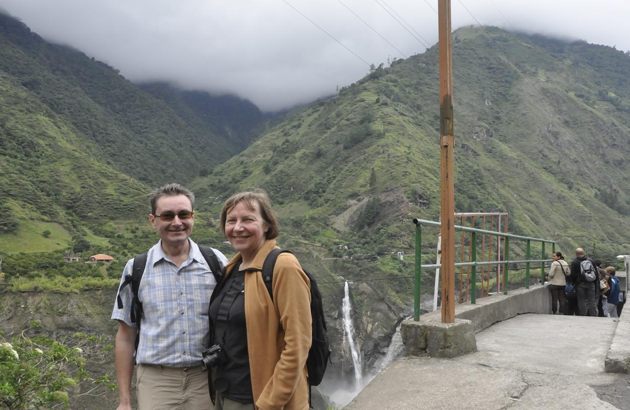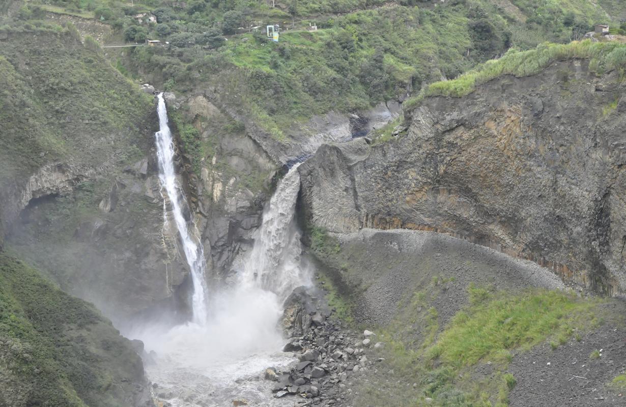 No i jakoś jest. Jedziemy w stronę wulkanu Tangurahua całkiem niezłą asfaltówką. Możemy podziwiać krajobraz zmieniający się tylko szczegółami, bo góry i wąwozy towarzyszą nam całą drogę. Ale, to i dobrze, lubię takie widoki. Góry, wodospady, udziwnione skały…