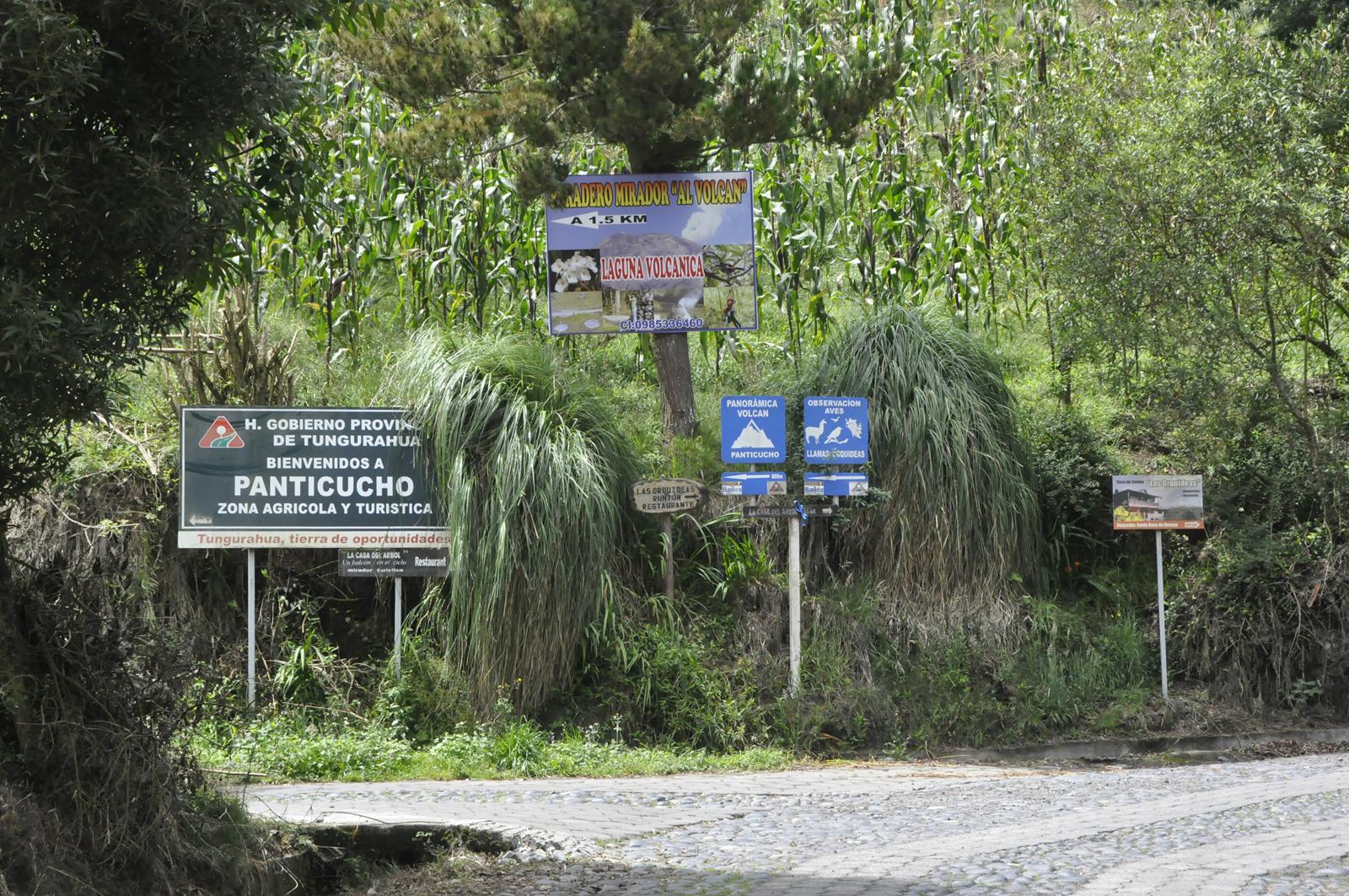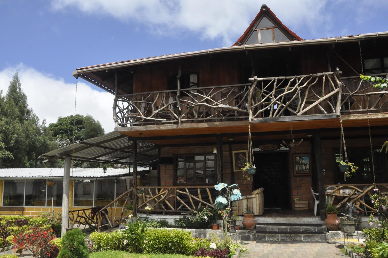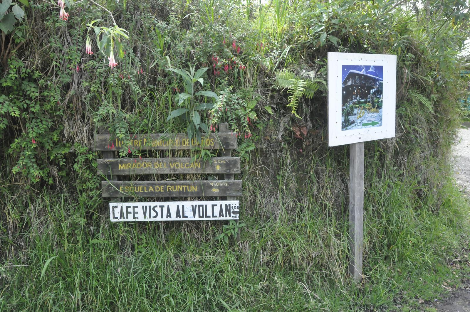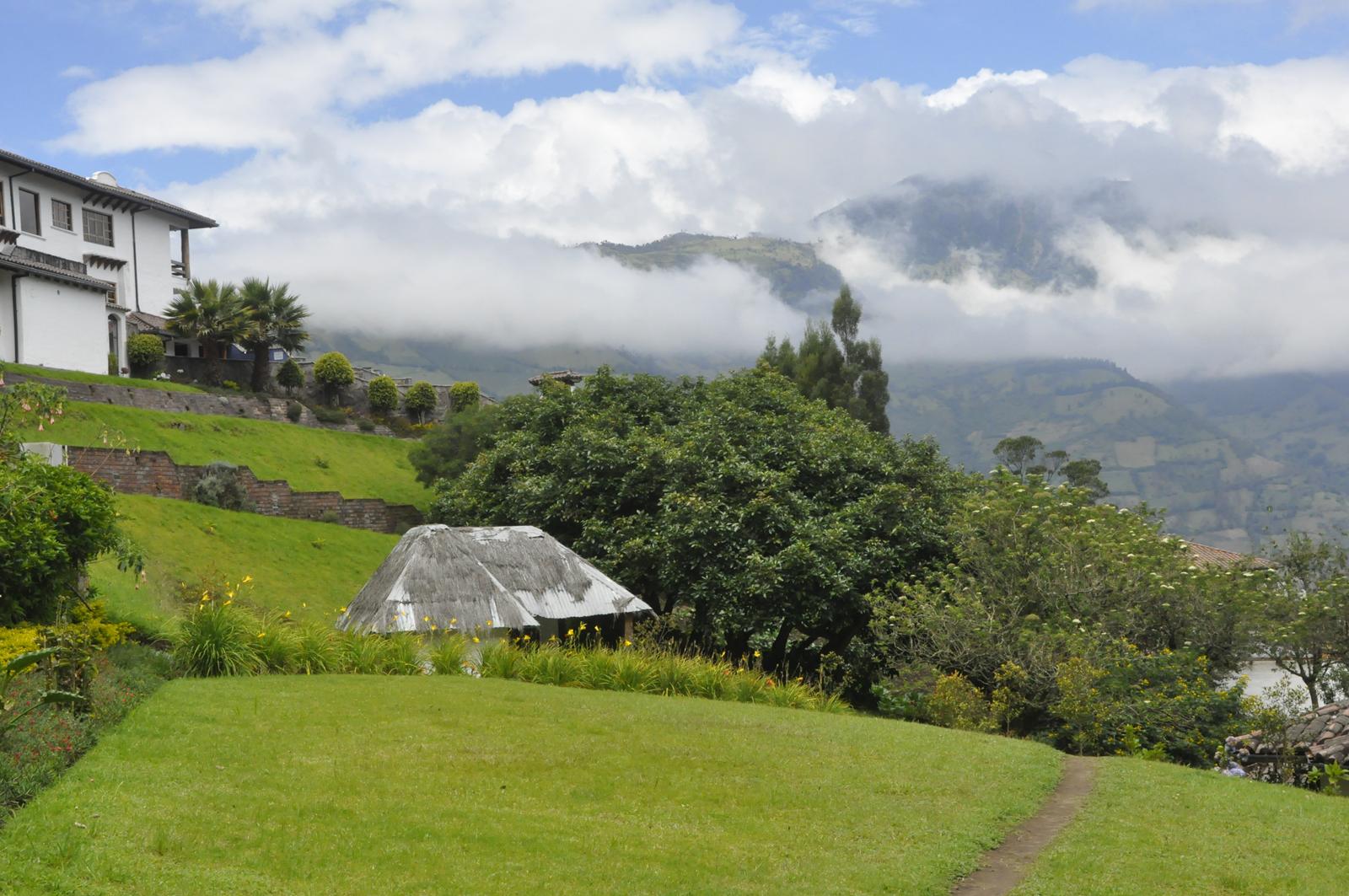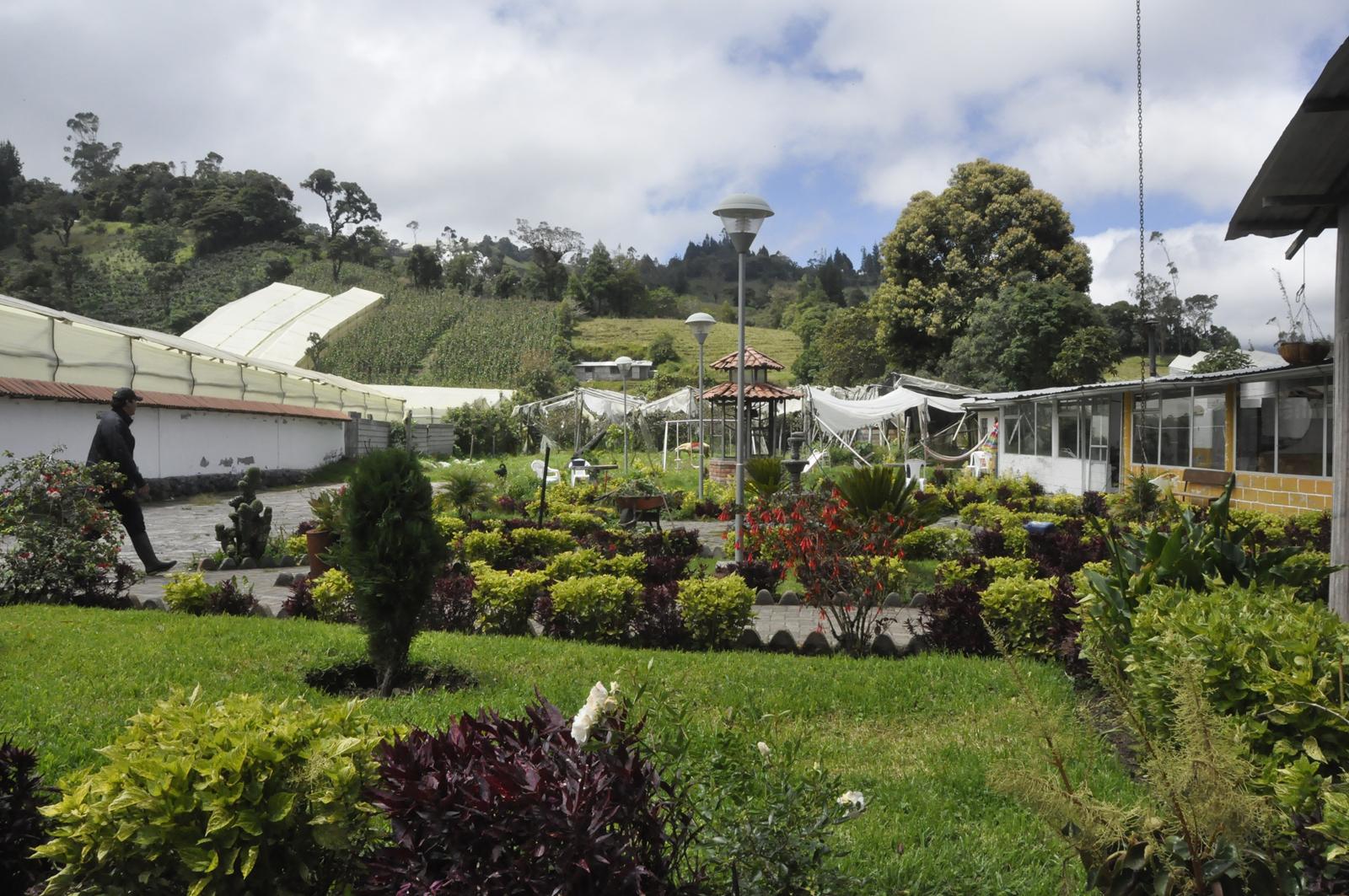 Prawdę mówił... Znajdujemy się na stoku wulkanu, gdzie pobudowali sobie domki bogaci Ekwadorczycy. Są również pensjonaty, hoteliki... Trawa wystrzyżona, otoczenie zadbane. Widać, że przebywają tutaj ci, których stać na luksus porządku i czystości.