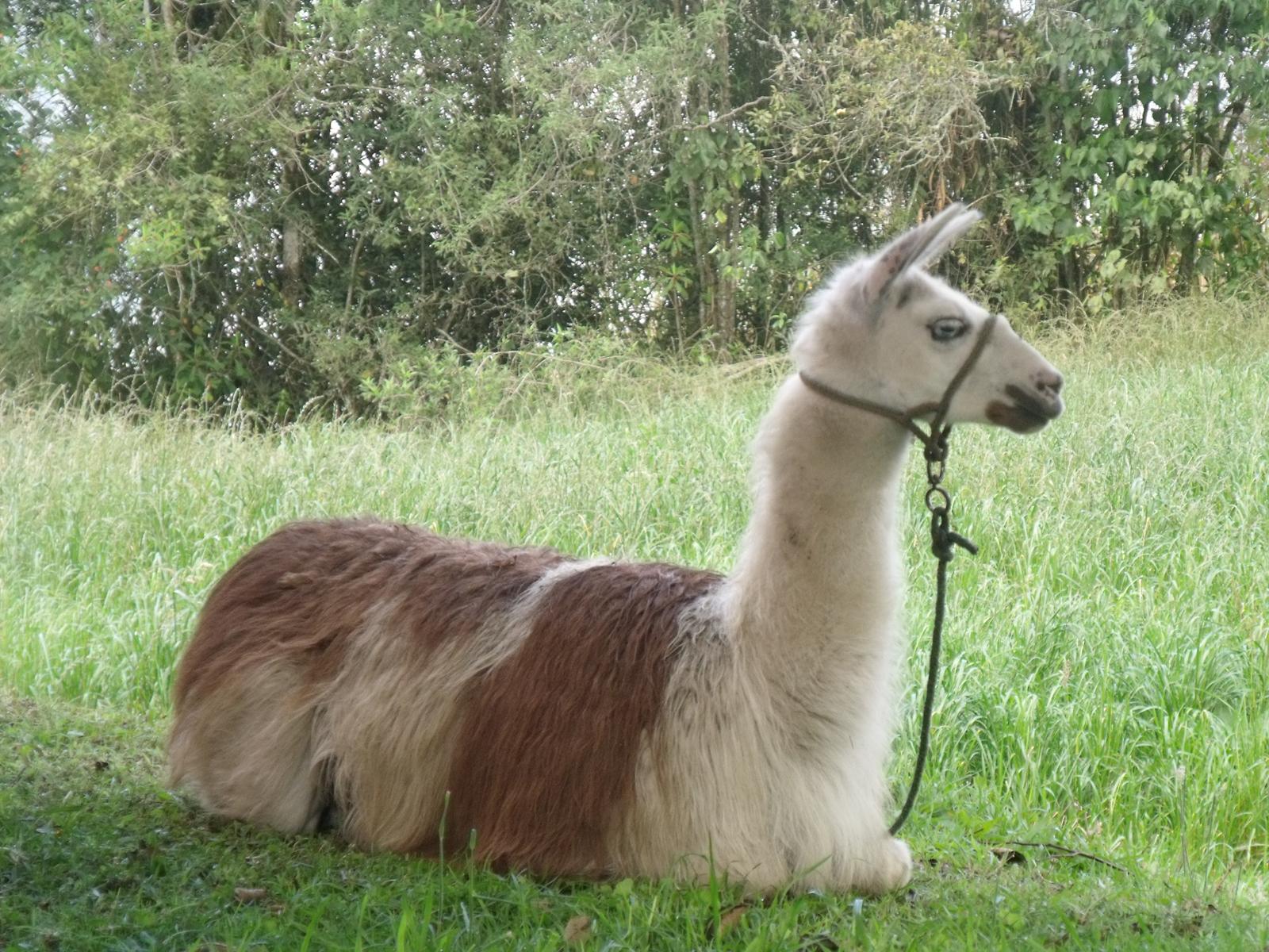 Dochodzimy do restauracyjki, przy której wylegują się lamy. Zadbane lamy. Na szyldzie było napisane, że jest widok na wulkan, ale chmury przeszkadzają. Nic nie widać.