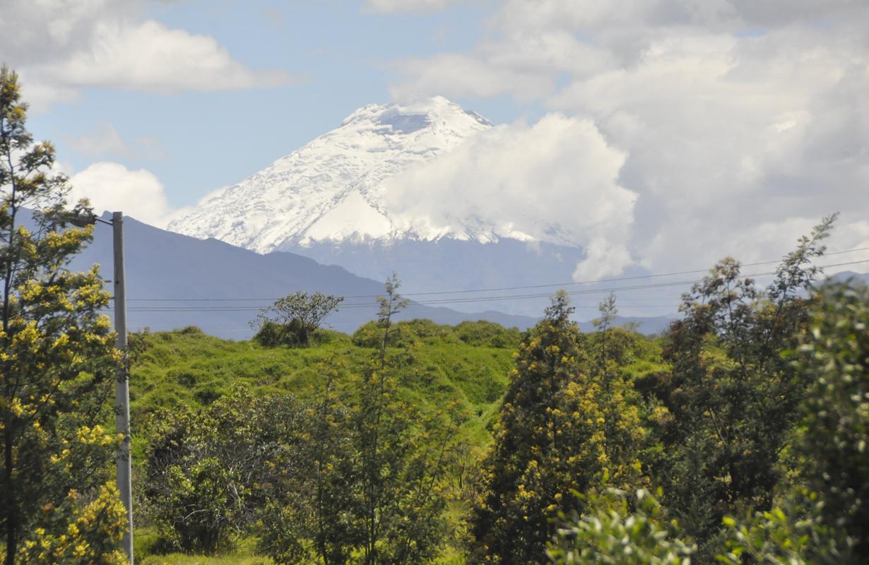 Okolicy również się przyglądam, bo jest czemu. Nad miastem góruje wulkan Cotopaxi, a że zrobiło się słonecznie, to mogę podziwiać GO w pełnej krasie. Trochę żal, że to teraz taka pogoda, a nie wtedy, gdy jechaliśmy do Baños, bo moglibyśmy obejrzeć całą aleję wulkanów...