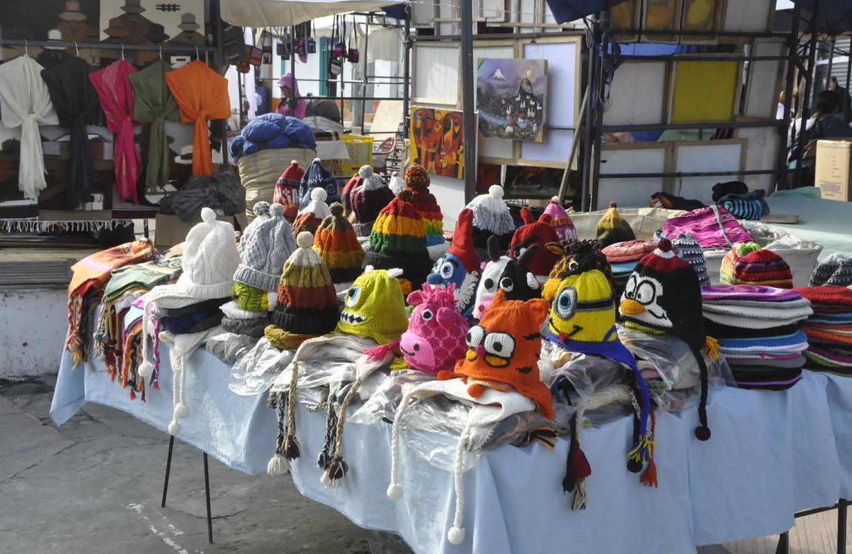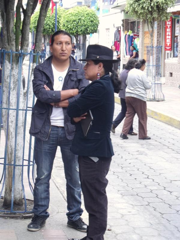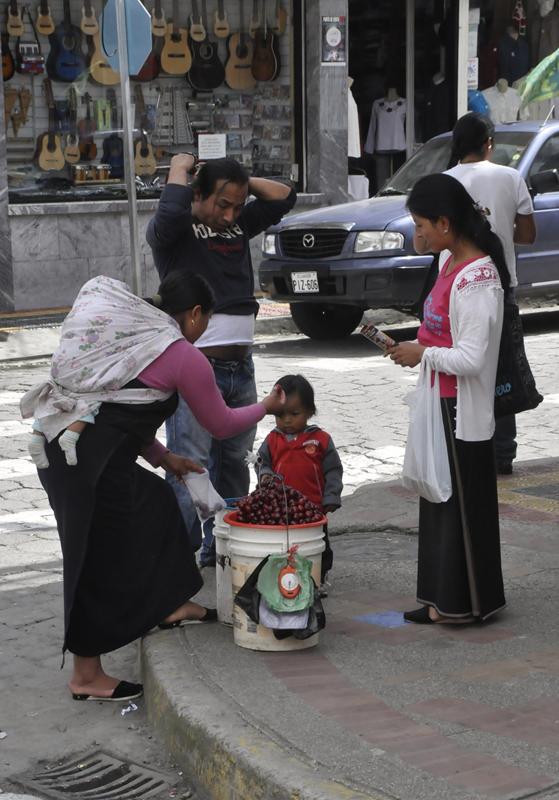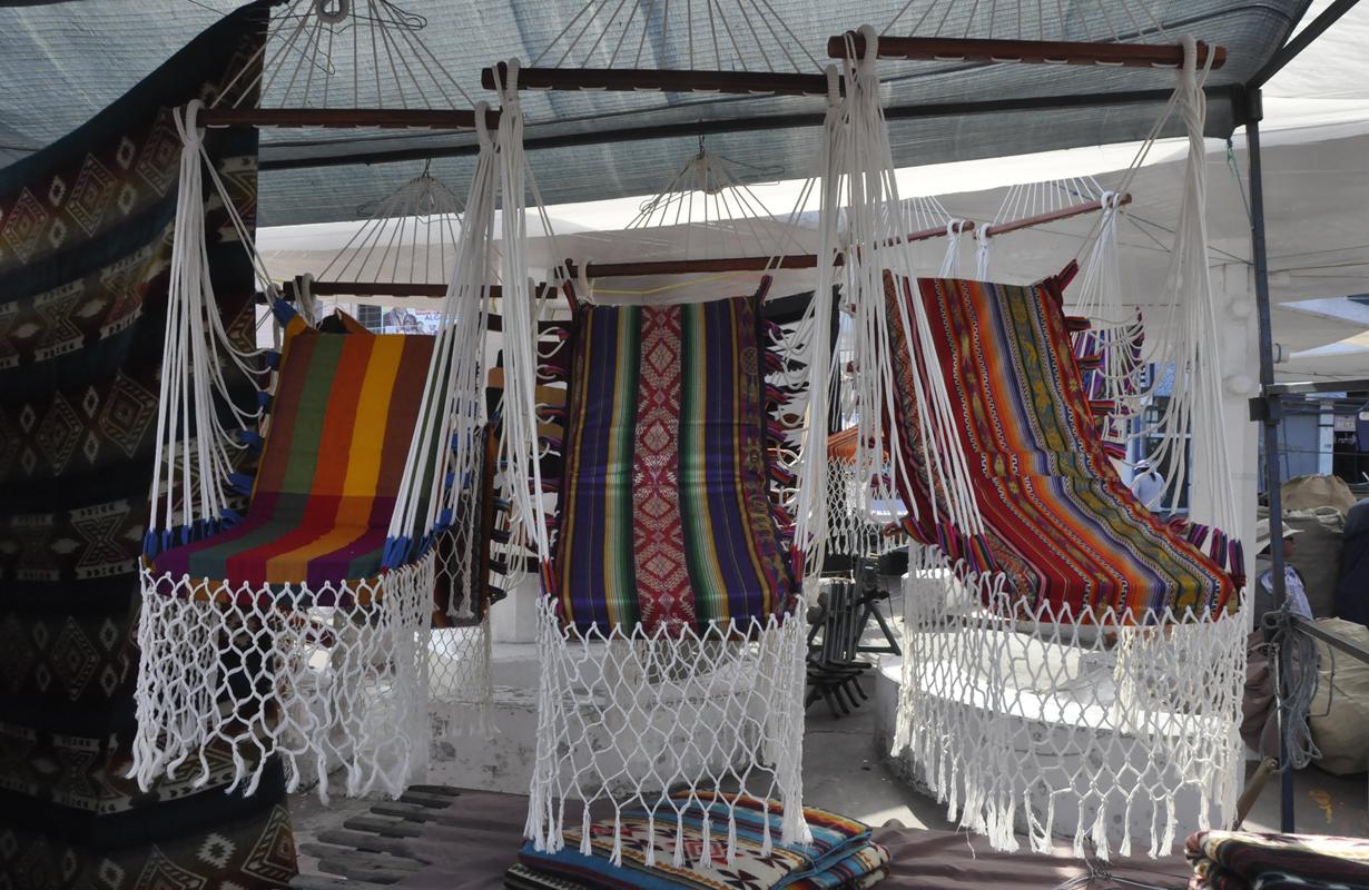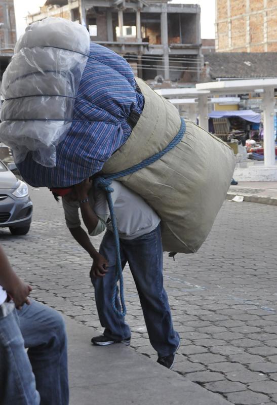 Otavalo słynie z sobotnich targów. Jest czwartek, ale na placu są sprzedający. To znaczy w większej części byli, bo pozostało tylko kilkunastu, a i oni się zwijają. Pijąc piwko w knajpce przy targowisku oglądamy, jak transportują wielkie pakunki do schowków położonych wewnątrz kwartałów mieszkalnych. Silni ludzie!
