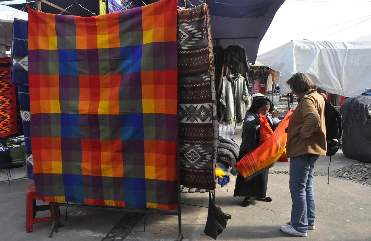 Mamy prawie dwie godziny czasu, więc idziemy na targ obejrzeć, co tam ciekawego. Wczoraj nie udało nam się zobaczyć, bo przyszliśmy za późno i już się zwijali. Dzisiaj, za to w pełnym słońcu, możemy podziwiać miejscowe wyroby.