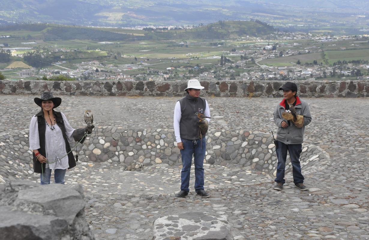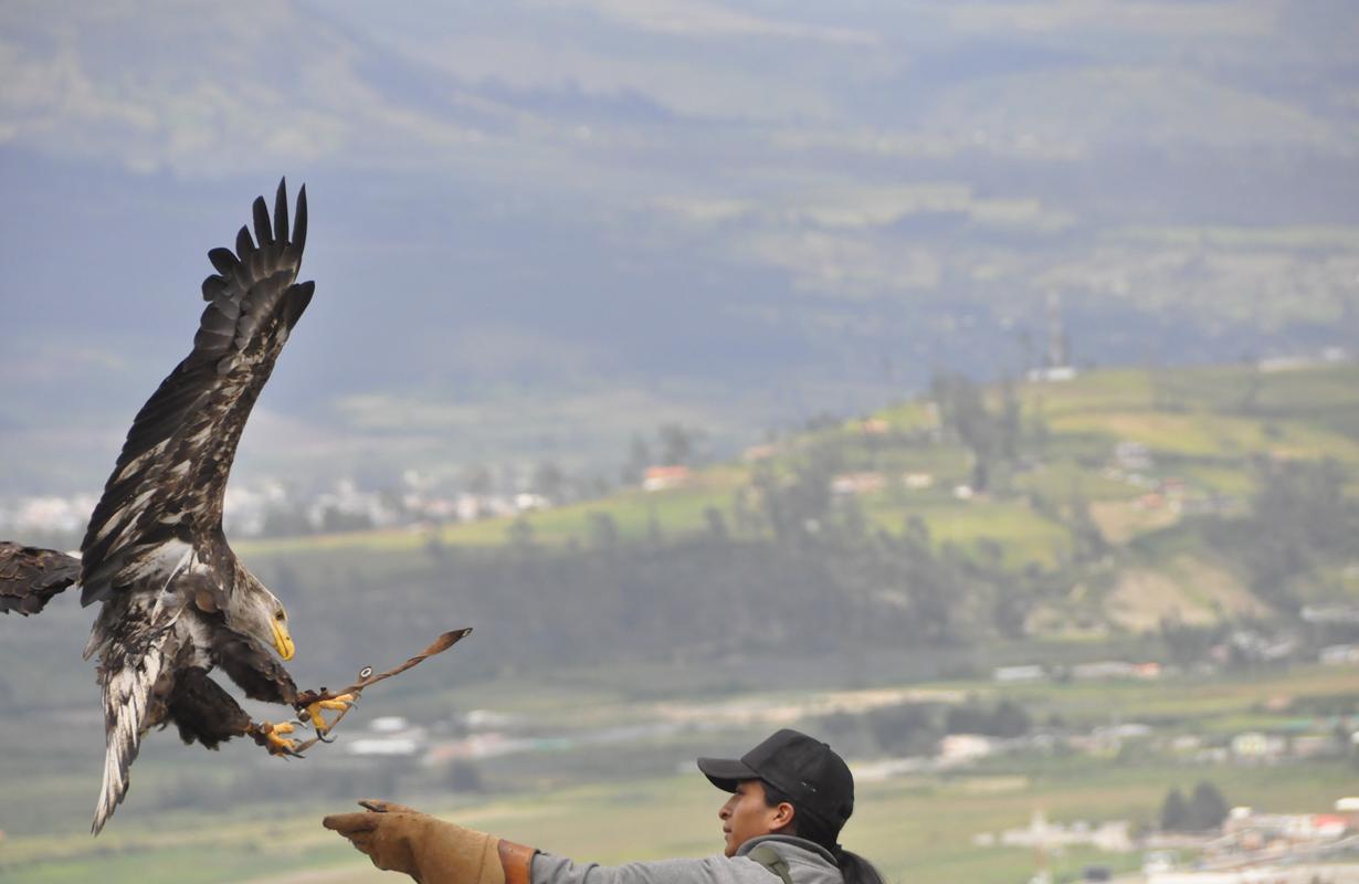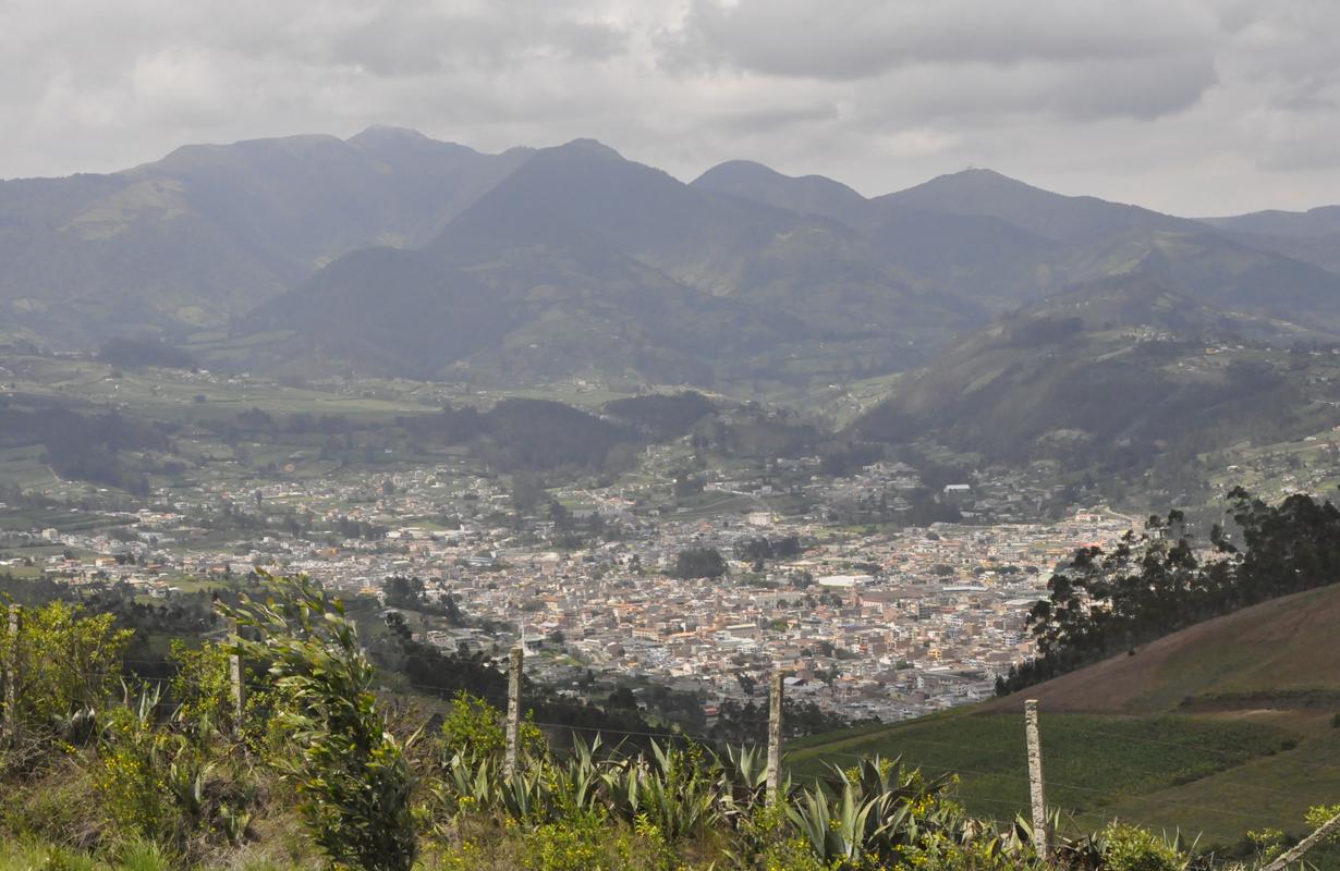 Terenówką wspinamy się na zbocze wyjeżdżając nad Otavalo. Możemy podziwiać, jak pięknie położone jest miasto. Wreszcie dojeżdżamy do celu – małego ogrodu zoologicznego z ptakami. Amber jest tutaj znana i zaraz zostaje „zagospodarowana”. My idziemy do małego amfiteatru, z którego rozciąga się widok na dolinę, w której usadowione jest miasto.