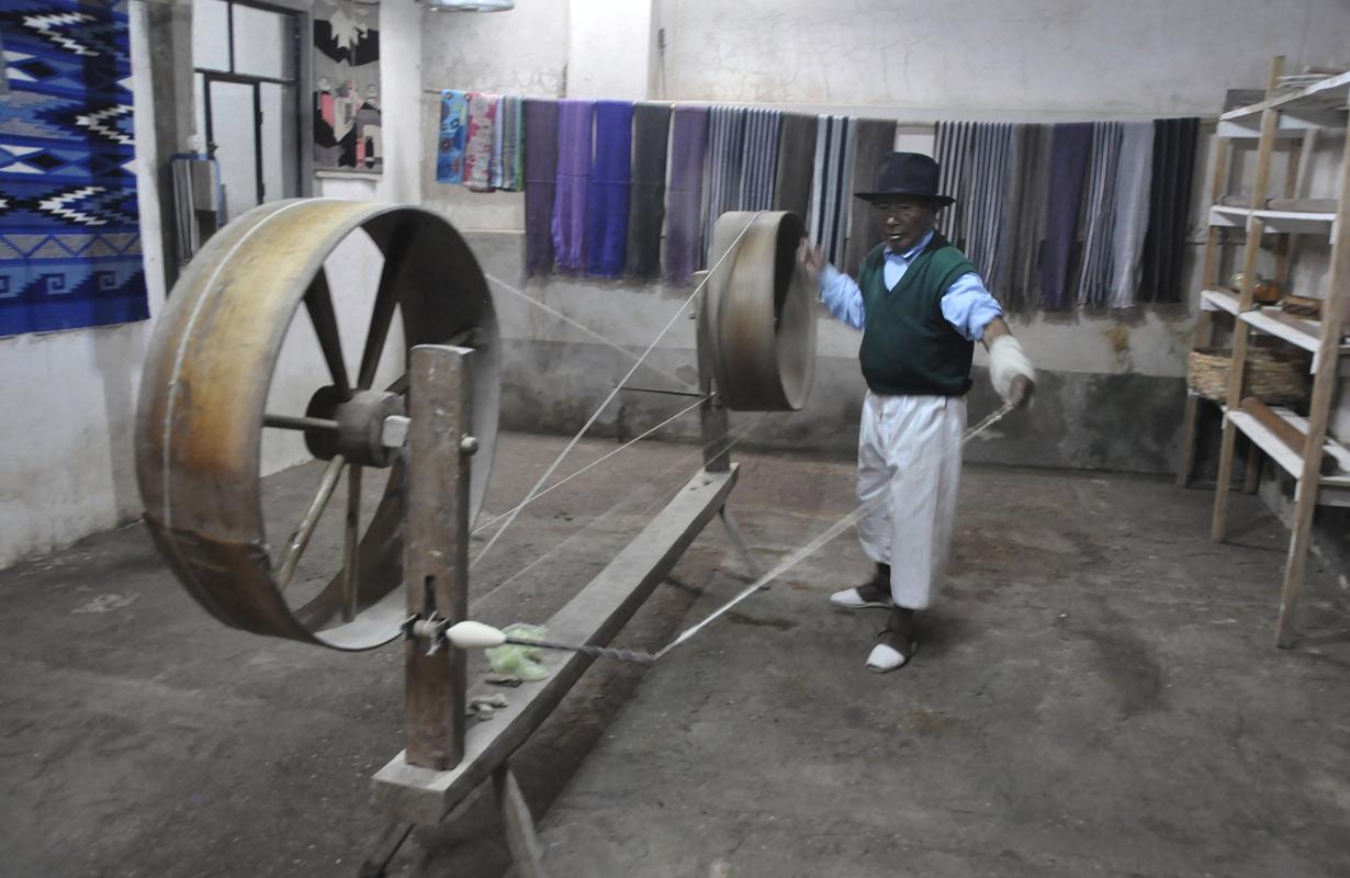 Na koniec wycieczki zwiedzamy warsztat produkcji pledów i innych wyrobów z wełny. Właścicielem i zarazem robotnikiem jest dziadek, który ma 85 lat. Pochwalił się, że od 81 lat pracuje w tym zawodzie. Pokazał, jak z wełny powstaje pled. Od czesanie, przez wyrób nici, aż do tkania.