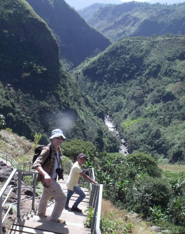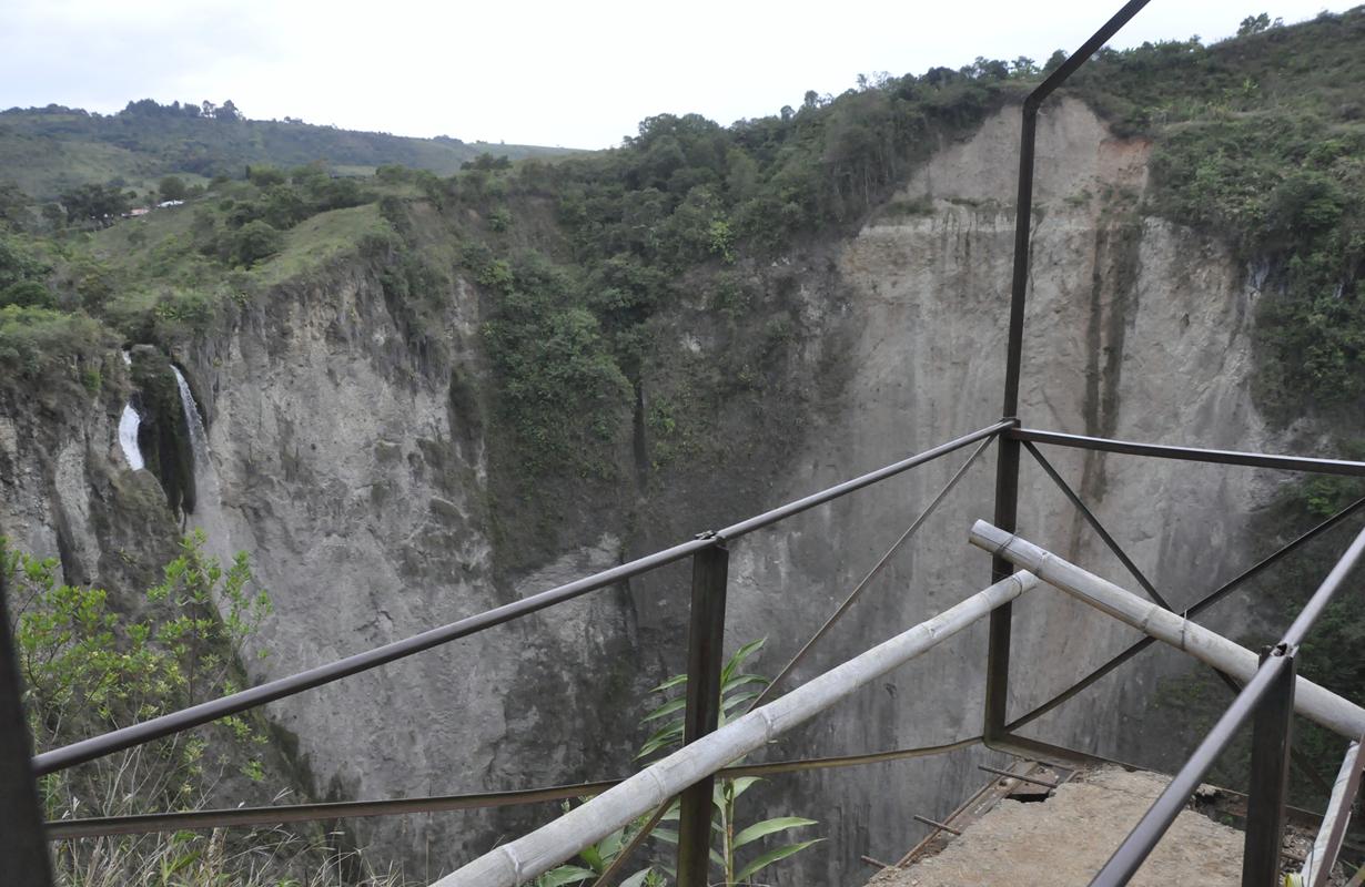 Ostatnim punktem programu jest jeszcze jeden wodospad. Najbardziej podoba mi się kładka widokowa (trudno to to inaczej nazwać), która sterczy nad przepaścią. Jest troszkę zużyta czasem. Pordzewiała, podłoga świeci dziurami. Ponieważ nie ma chętnych, więc ja robię za próbnik. Wlazłem, troszkę potupałem. Nie zawaliło się.