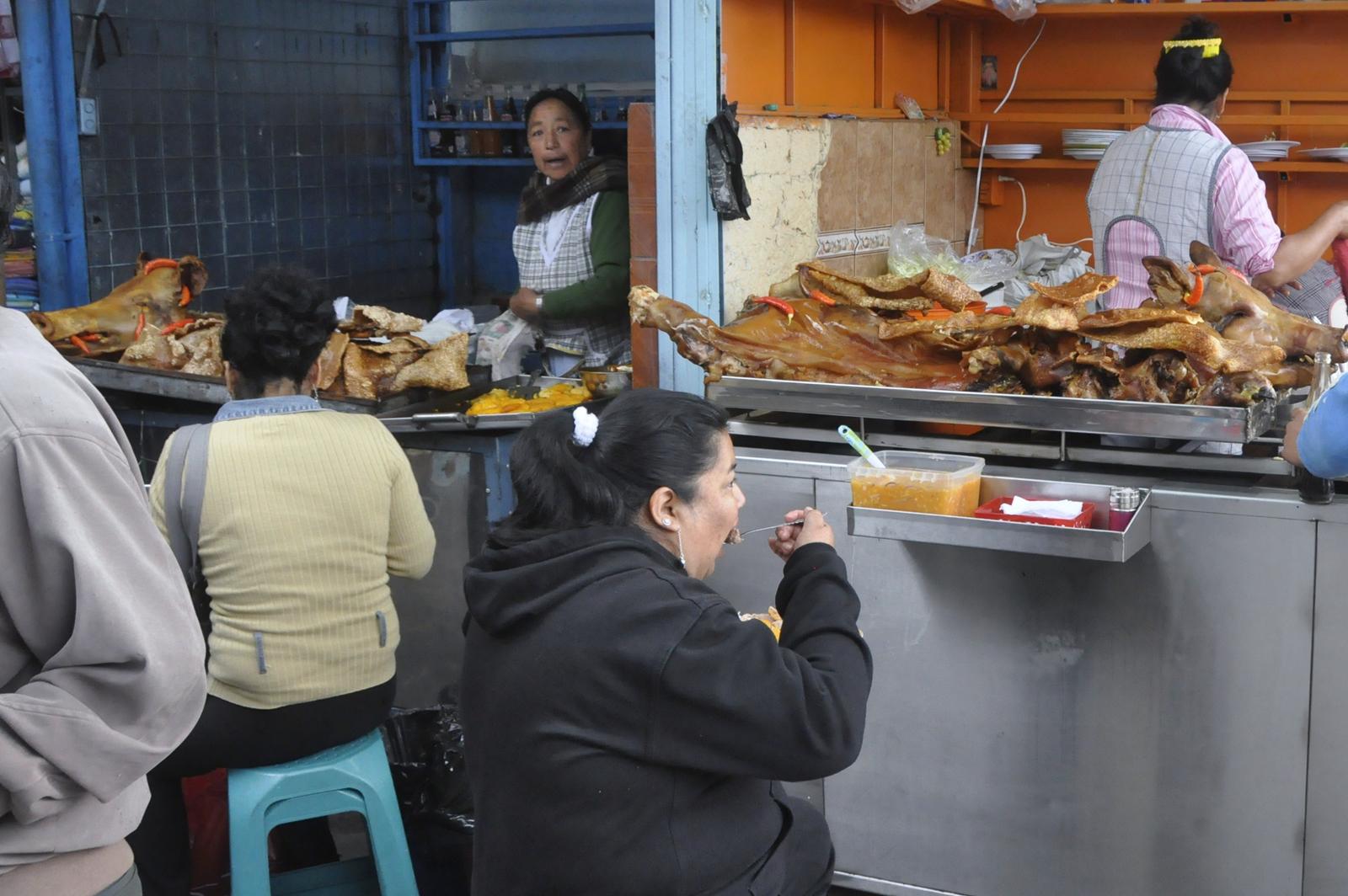 Trochę pochodziliśmy, szukając jakiś tutejszych wyrobów, ale poza jadłodajniami, gdzie królowała świnka morska i pieczony łeb świni, nic żeśmy nie znaleźli. Może źle szukaliśmy?