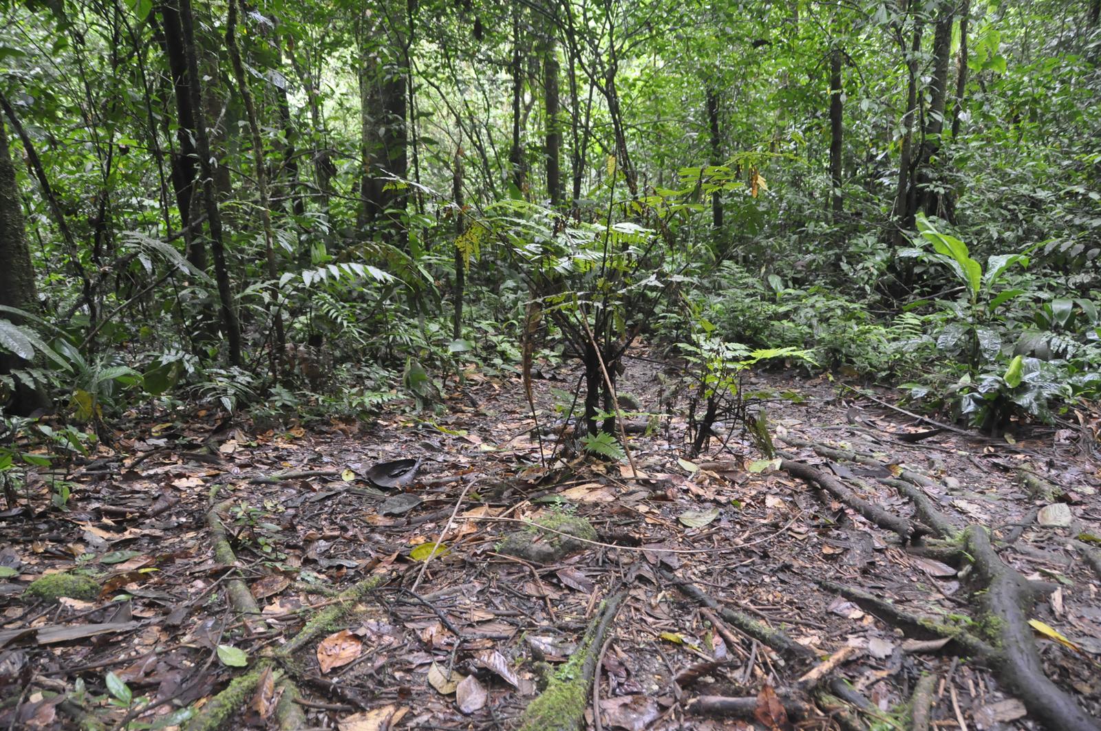 Dżungla jest taka, jak i powietrze. Wilgotna. Podłoże przysypane liśćmi, które są w różnym stadium rozkładu. Drzewa zmieniają liście, tyle, że robią to cały czas, przynajmniej tak myślę. Po tych liściach idziemy. Jest ślisko i trzeba uważać przy zejściach, czy wejściach pod górę.