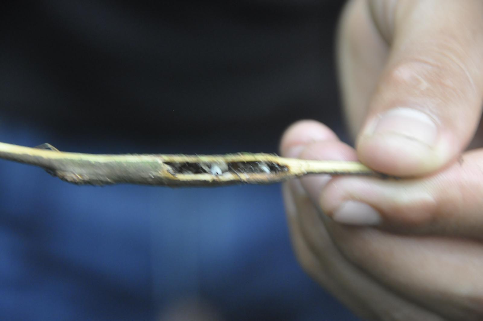 Pokazuje nam mrówki żyjące na drzewie. Właściwie, to w drzewie. Odłamuje gałązkę i widać jak sobie chodzą w tunelu zrobionym przez siebie. David mówi, że są bardzo smaczne i częstuje mnie, abym spróbował. Odmawiam, bo jakoś nie lubię, jak mi coś biega po zębach usiłując uniknąć zmiażdżenia. Wolę jeść, to, co już się nie rusza. Ja nie chciałem, to on zjadł. Miał troszkę dziwną minę. Taką zadowolono-zawstydzoną. Zupełnie niepotrzebnie.