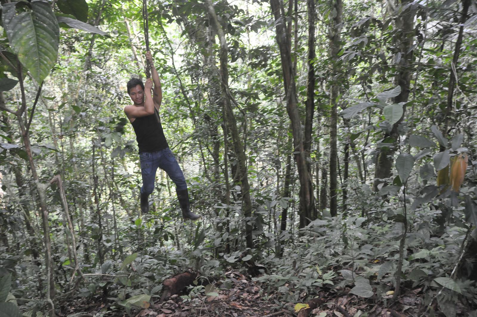 Mamy okazję się dowiedzieć, że kurarę wyrabia się z liany, a wielkie drzewo, które podziwialiśmy służyło do porozumiewania się. Z żalem skonstatował, że to już przeszłość, bo mają telefony komórkowe. Przy okazji, bawiąc się, pokazał, jak wytrzymała jest liana.