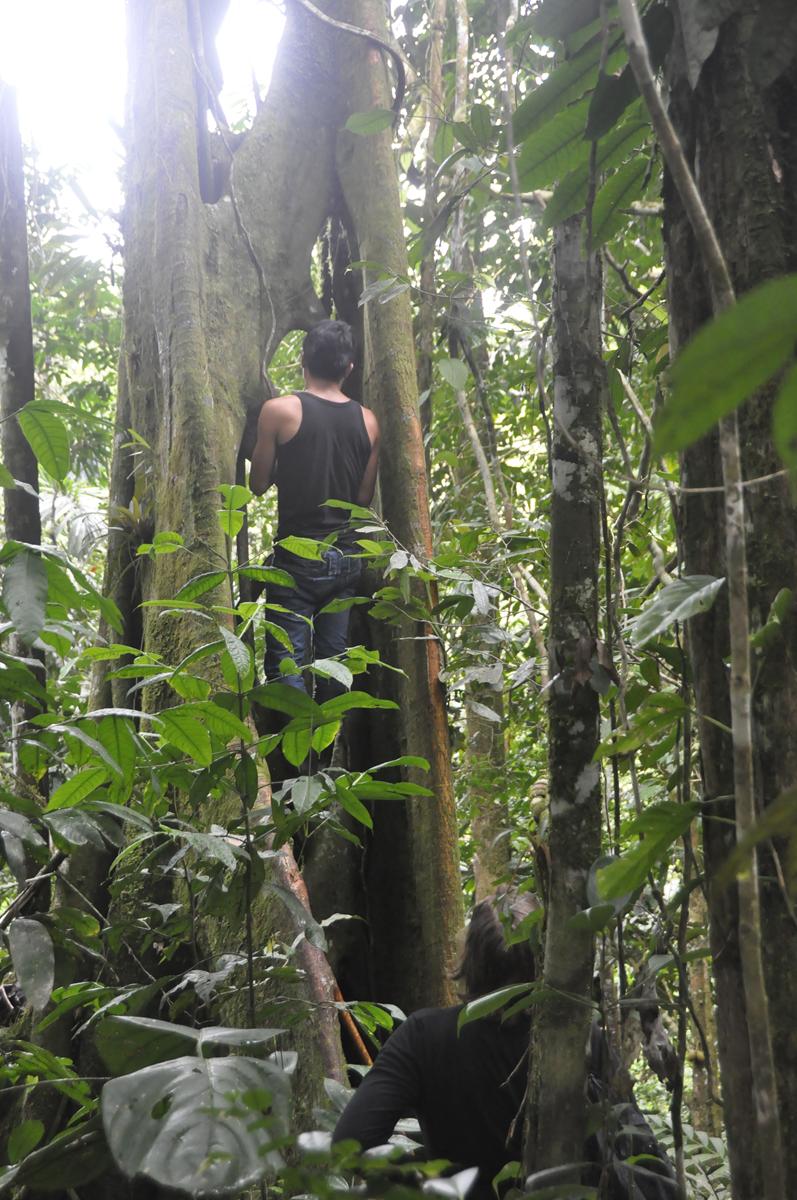 Mamy okazję obejrzeć drzewo oplecione przez liany. David tłumaczy, że liany, kiedy już oplotą drzewo, to ono umiera. Zostają same liany, które zostają oplecione przez następne liany i tak w kółko.