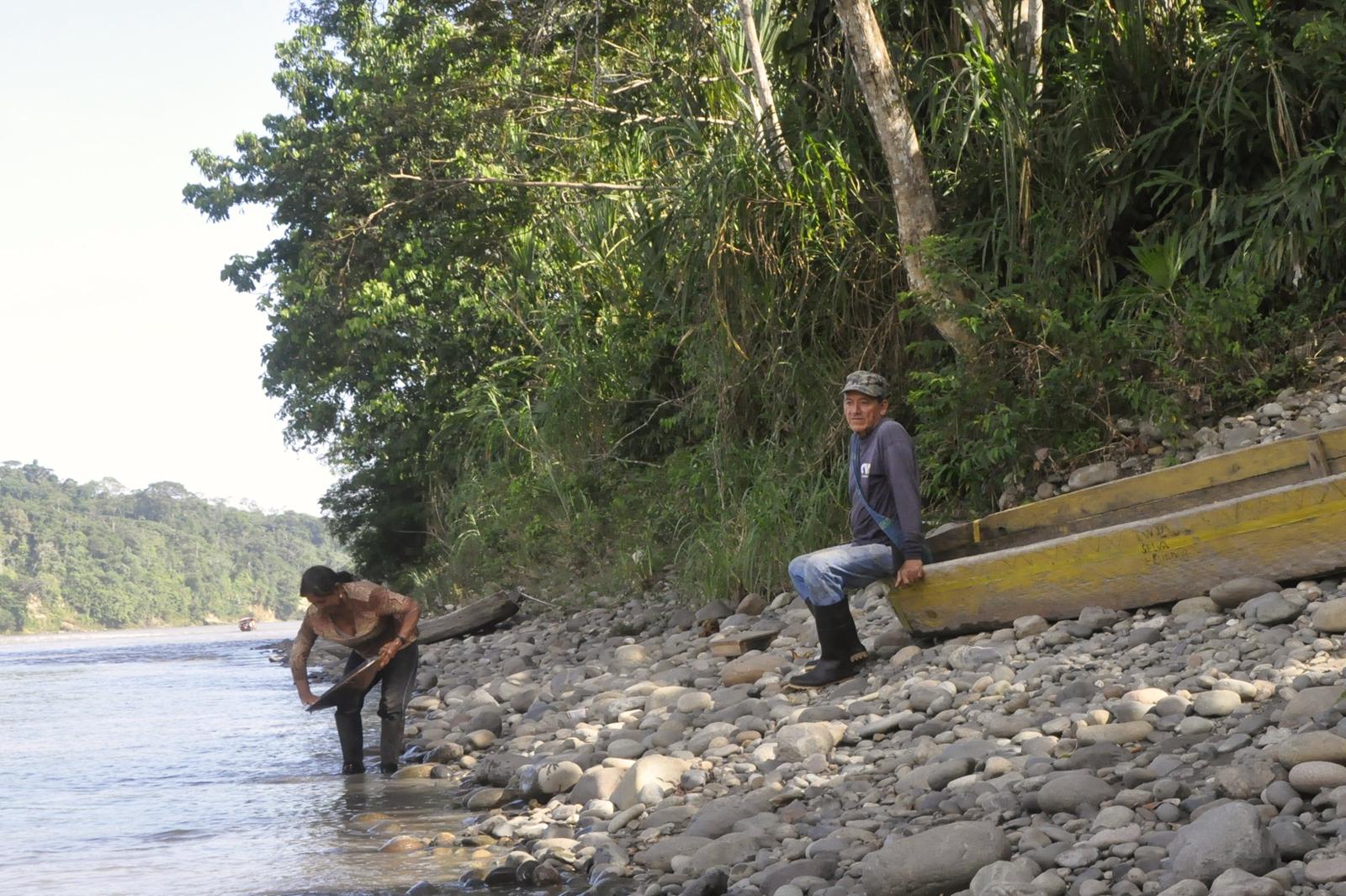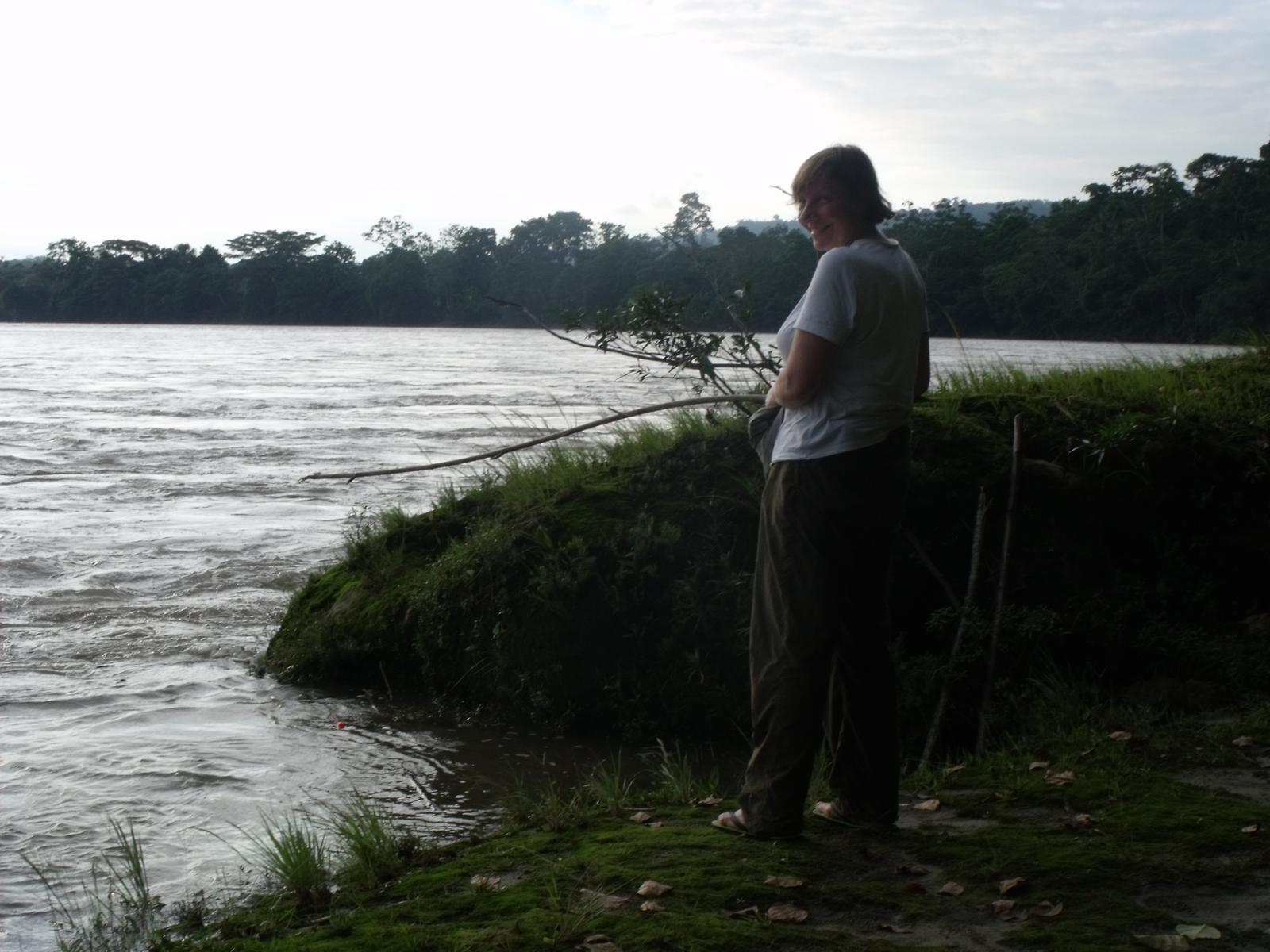 Na brzegu, nad samą wodą, David wyjaśnia o co chodzi i co teraz będzie się działo. Będzie płukanie złota. Złoto! Tutaj! Widziałem, co prawda płuczki, ale jakoś tak nie dotarło do mnie, że jeżeli wydobywają z dna rzeki, to można również i z brzegu. Tam, gdzie nurt sięga.