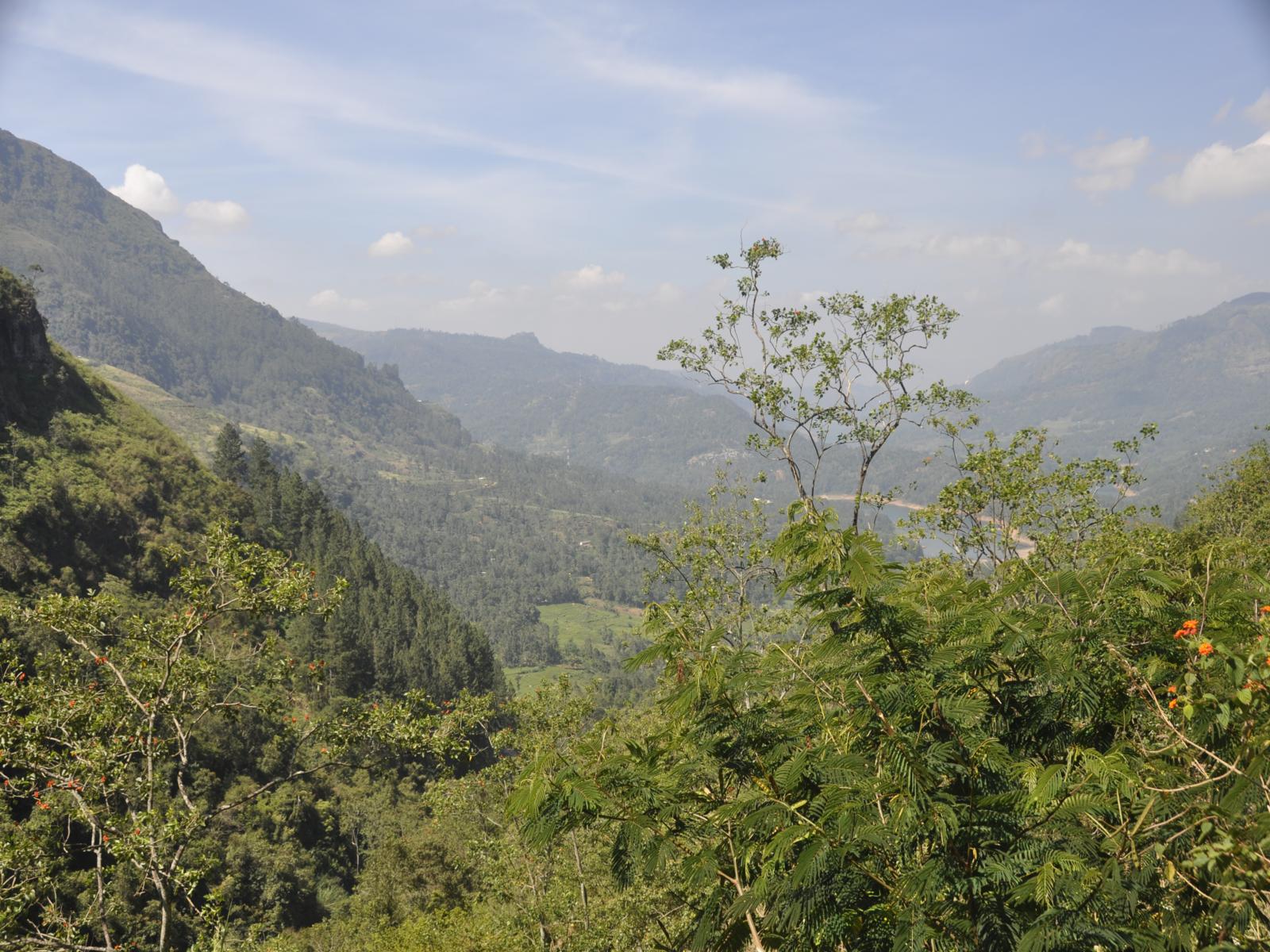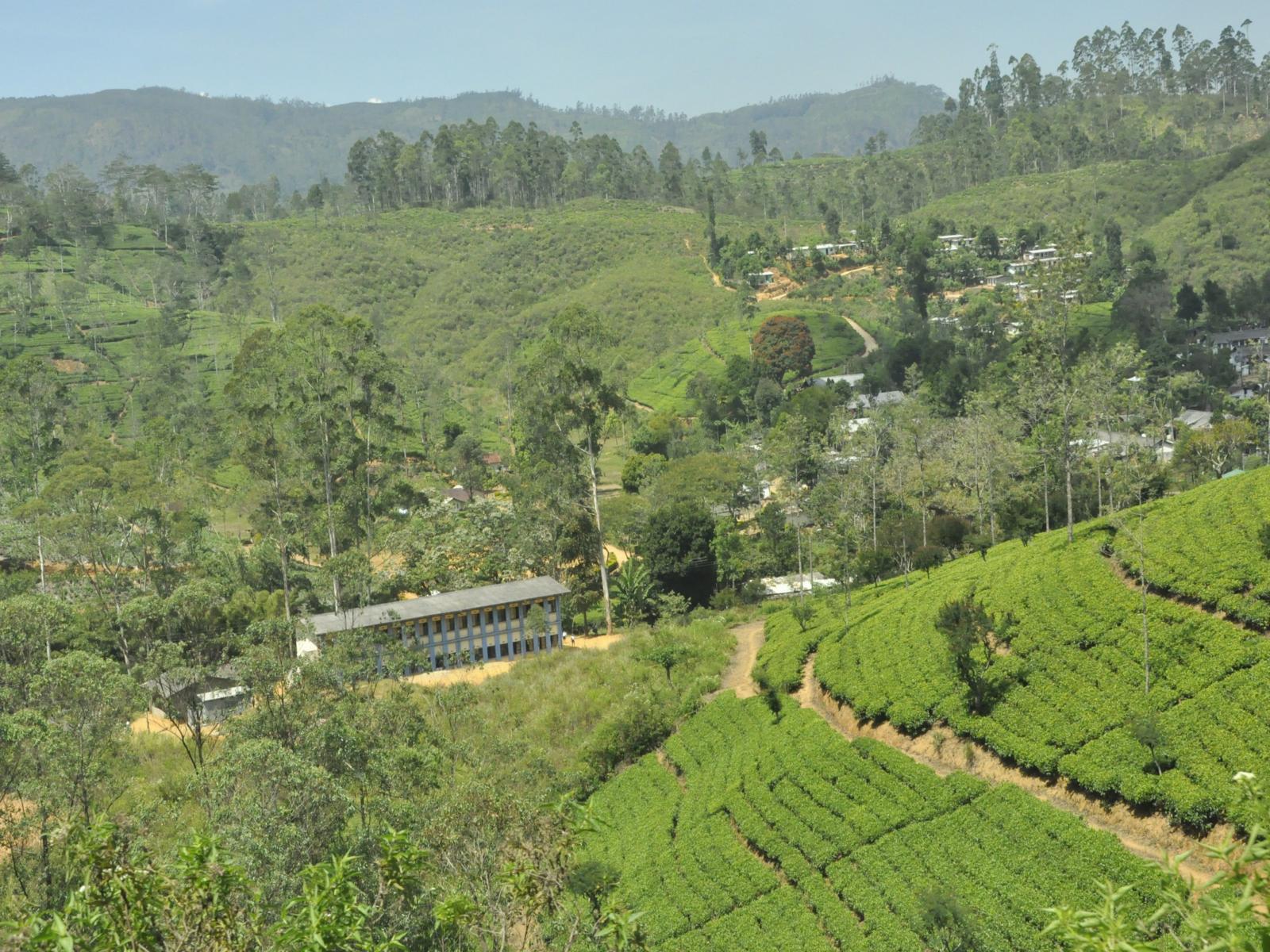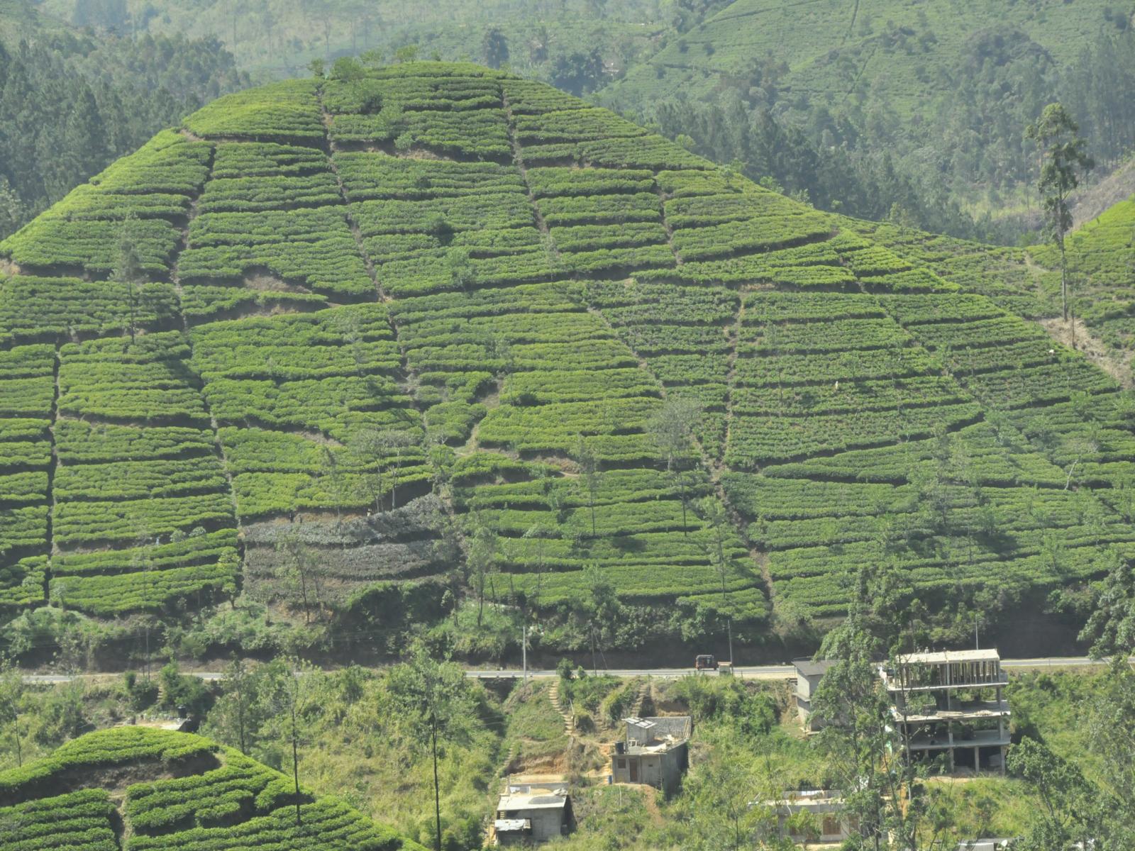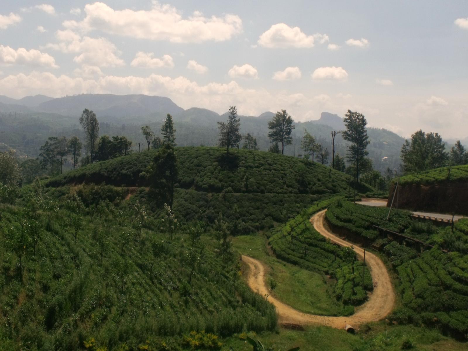 Pociąg jest taki sobie, chyba jeszcze pamiętający czasy Anglików, ale dzielnie i pracowicie pnie się pod górę. Wjeżdżamy w tereny górzyste. Sama miejscowość jest 2 tys m npm. Dzięki powolnej jeździe możemy sobie podziwiać krajobraz. Mijamy osady, przejeżdżamy nad jakimiś rzeczkami, wreszcie zaczynają się wzgórza z plantacjami herbaty. Taki dywanik niewysokich krzaczków pokrywający całe połacie obłych górek.