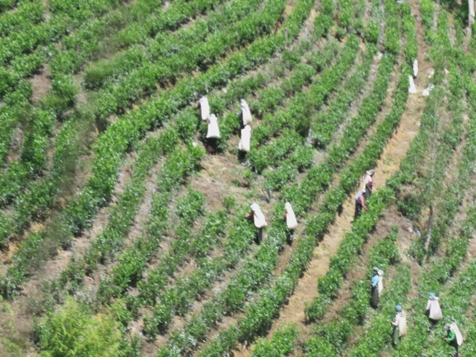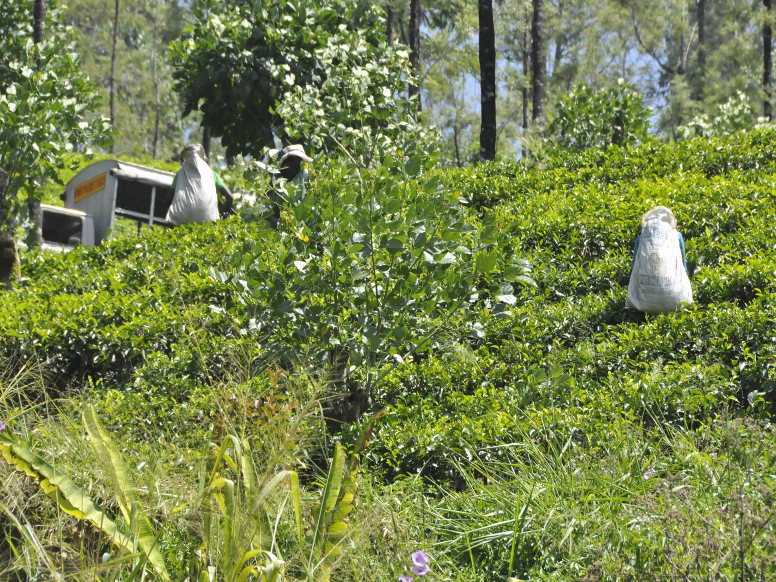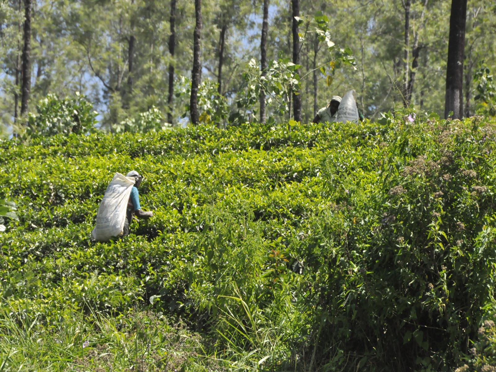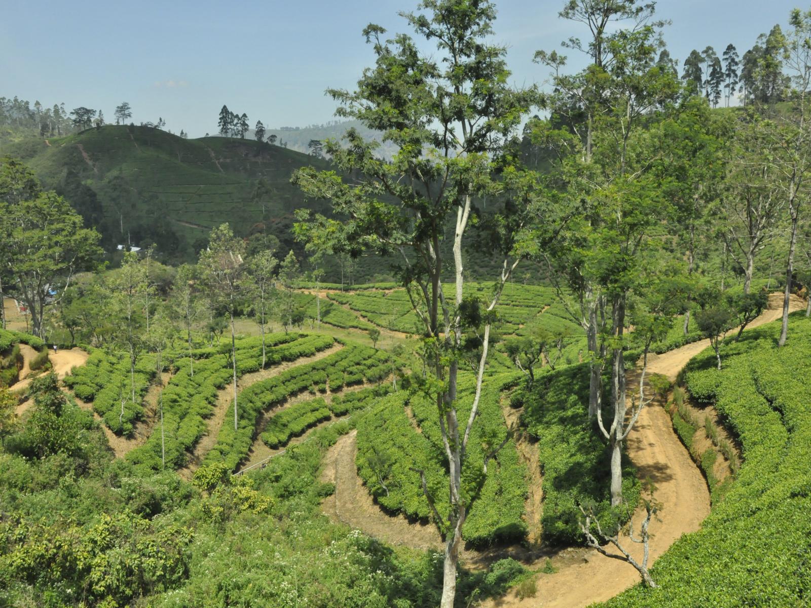 Pociąg jest taki sobie, chyba jeszcze pamiętający czasy Anglików, ale dzielnie i pracowicie pnie się pod górę. Wjeżdżamy w tereny górzyste. Sama miejscowość jest 2 tys m npm. Dzięki powolnej jeździe możemy sobie podziwiać krajobraz. Mijamy osady, przejeżdżamy nad jakimiś rzeczkami, wreszcie zaczynają się wzgórza z plantacjami herbaty. Taki dywanik niewysokich krzaczków pokrywający całe połacie obłych górek.