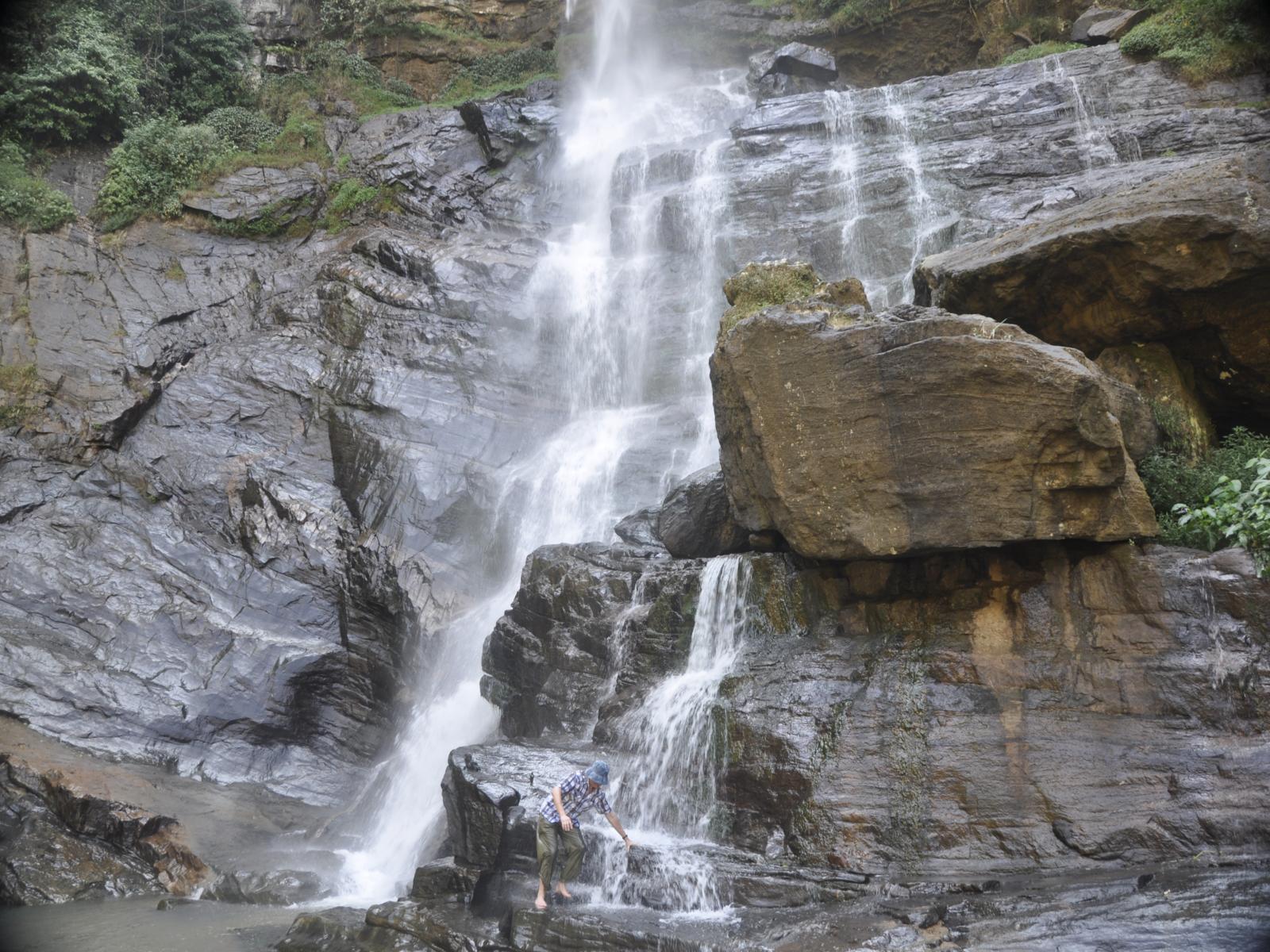 Po porannej kawie jedziemy nad wodospady. To tylko 20 kilometrów, ale że jedzie się serpentynami, a i autobus niezbyt sprawny, więc zajmuje nam to godzinkę. Jedzie się powolutku, co pozwala podziwiać widoki pól herbacianych i tutejszą przyrodę. Jest jeszcze niezbyt gorąco, więc przyjemnie.