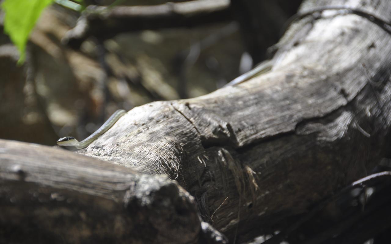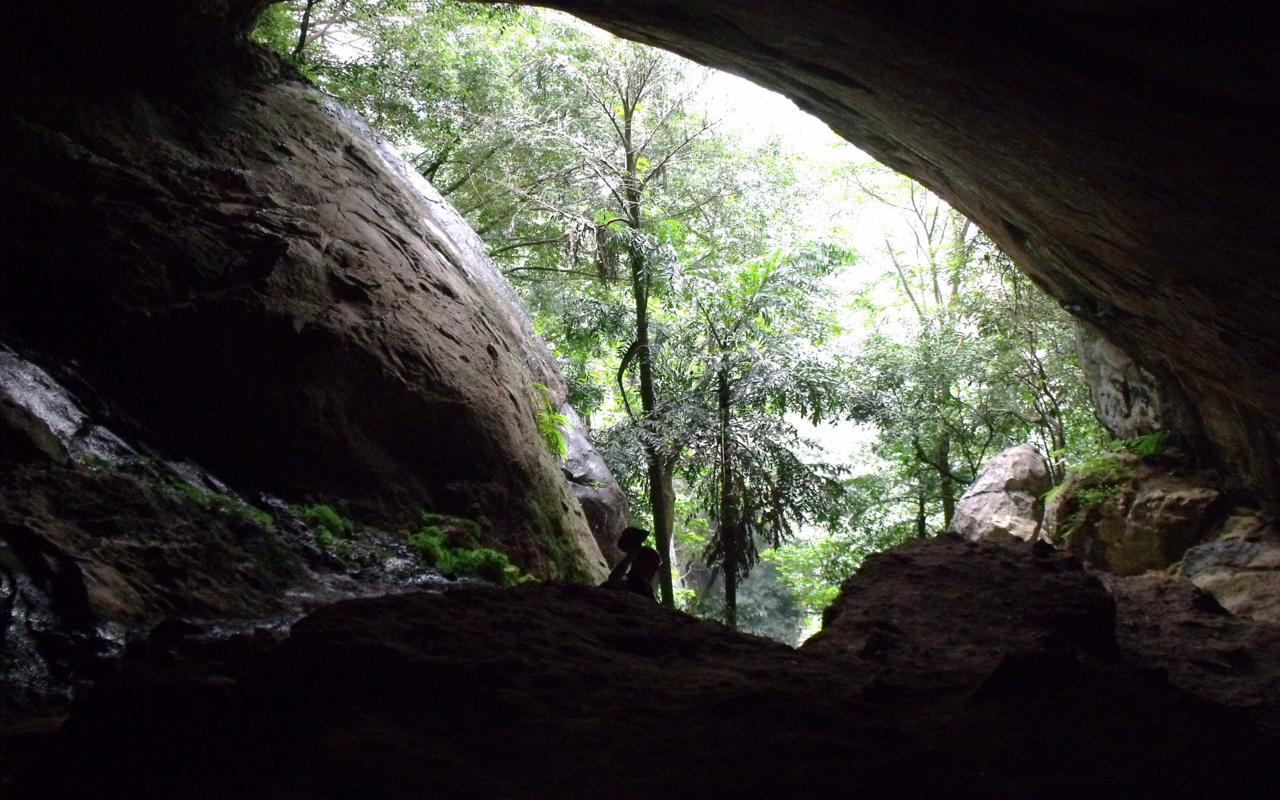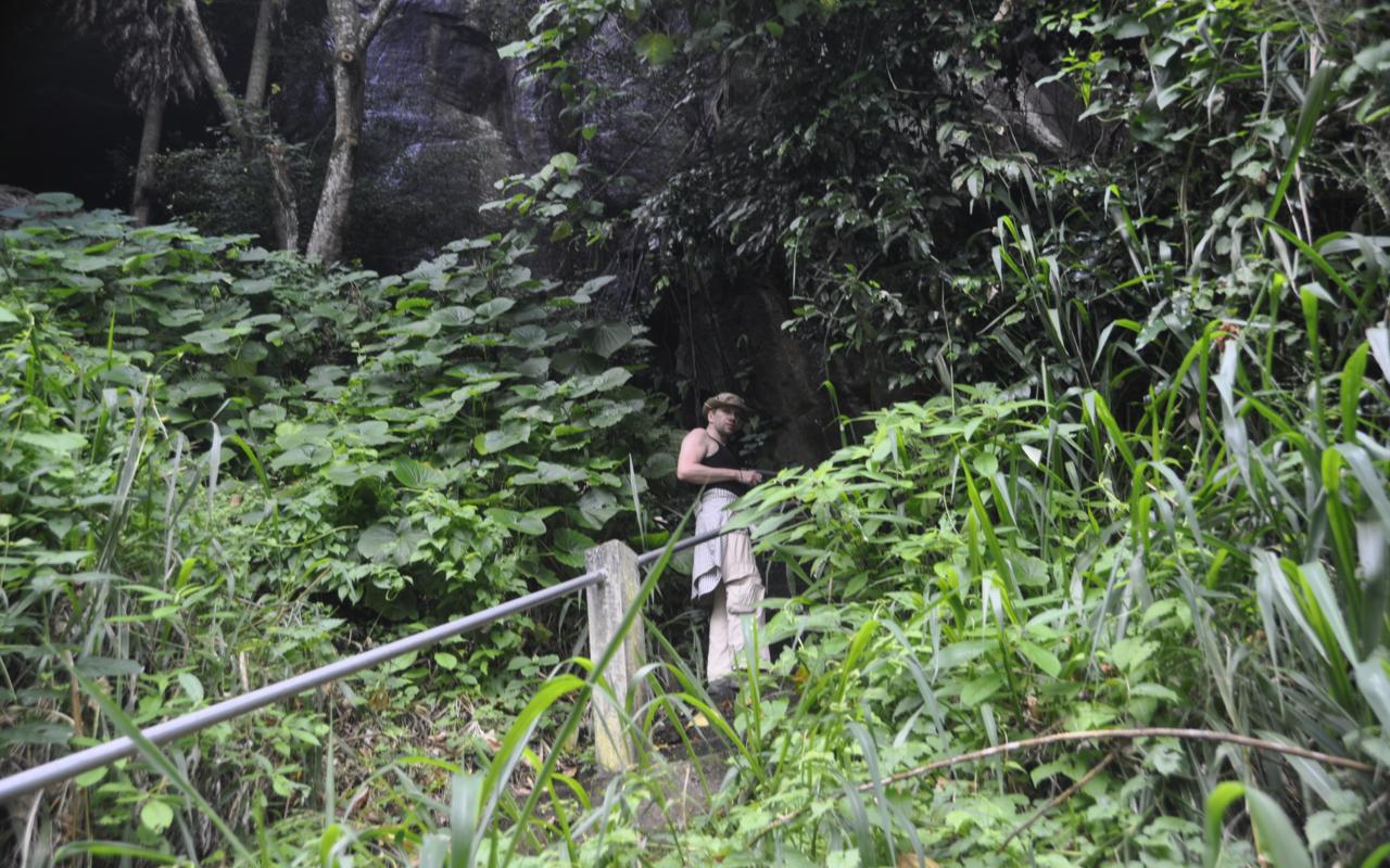 Wreszcie dochodzimy do ścieżki prowadzącej wśród zarośli do jaskini. Ponieważ cały czas się wspinamy, to i widoki coraz piękniejsze, co rekompensuje zmęczenie. Właściwie, to mam dosyć. Znowu się odwodniłem i ledwo idę. Przed samą jaskinią znajduję strumyki wody spływające ze skał. Jak dobrze zmoczyć głowę! I nie tylko!