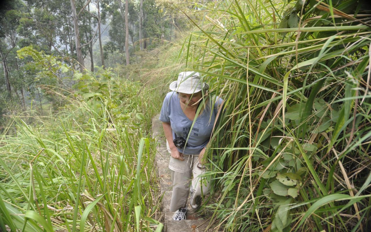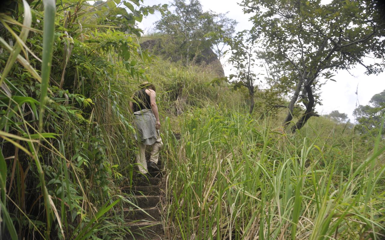 Dokleił się do nas, jednak Lankijczyk, który mimo naszych protestów zaparł się, że pokaże nam drogę. Pokazał. Musielibyśmy wykazać sporo inwencji, aby zejść ze szlaku, bo ścieżynka jest gęsto obrośnięta krzaczorami.
