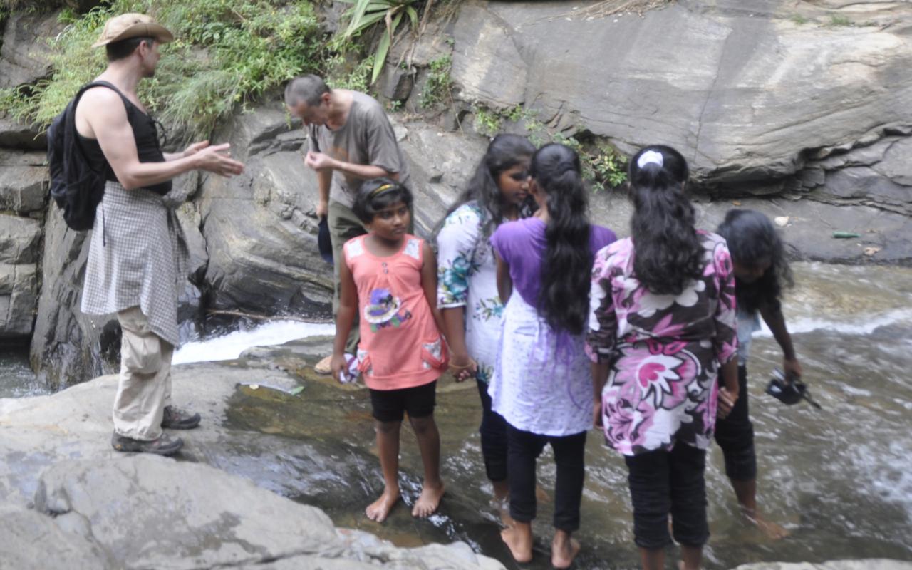 Wodospad jest, chyba jakimś świętym miejscem, bo sporo ludzi się tam myje. Każde zagłębienie, gdzie zbiera się ściekająca z góry woda, jest wykorzystywane jako basen. Kobiety włażą do wody w ubraniach, mężczyźni różnie – im młodszy, tym ma mniej na sobie...