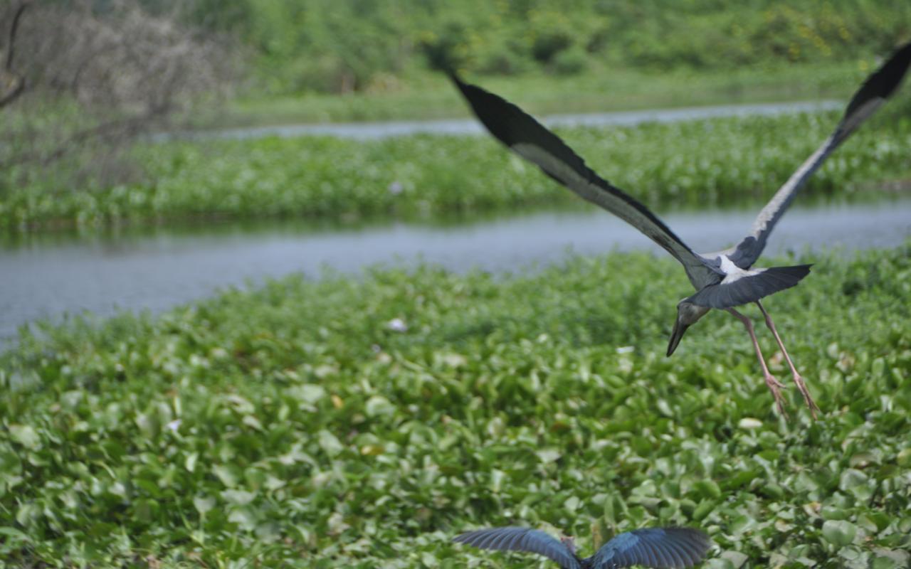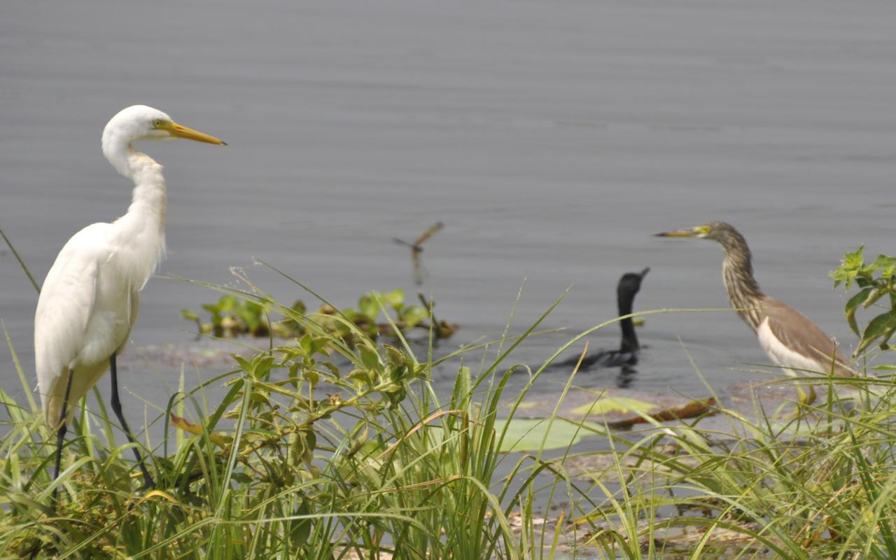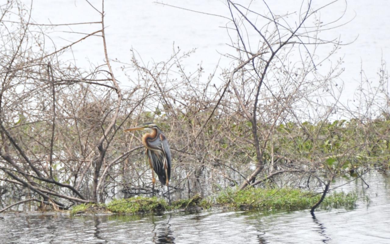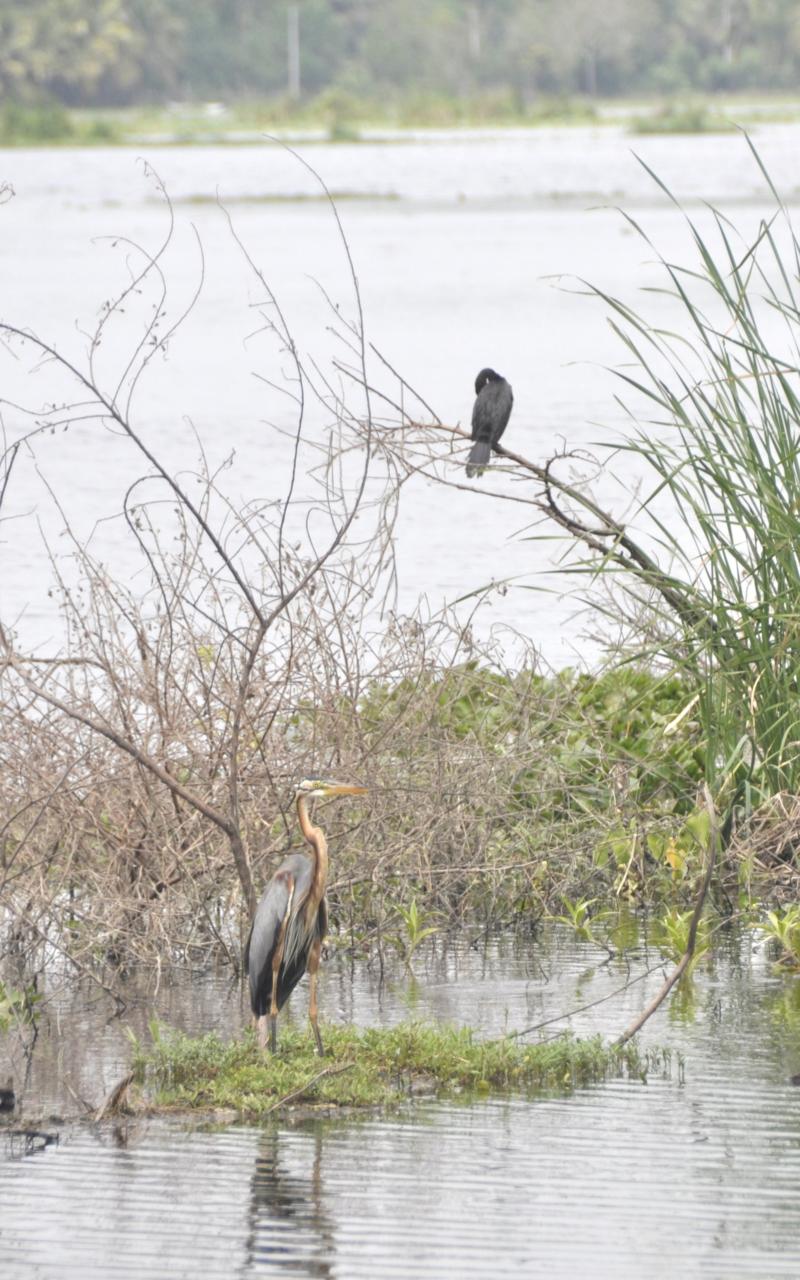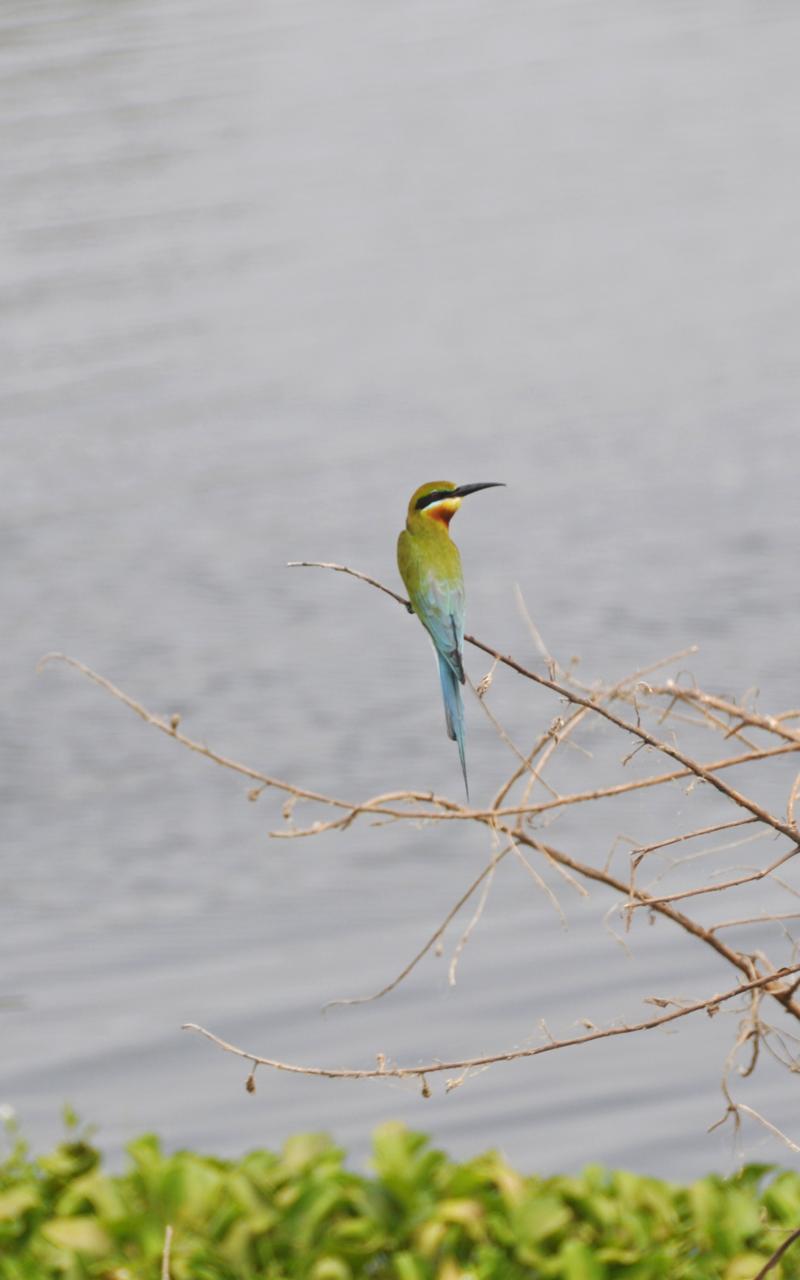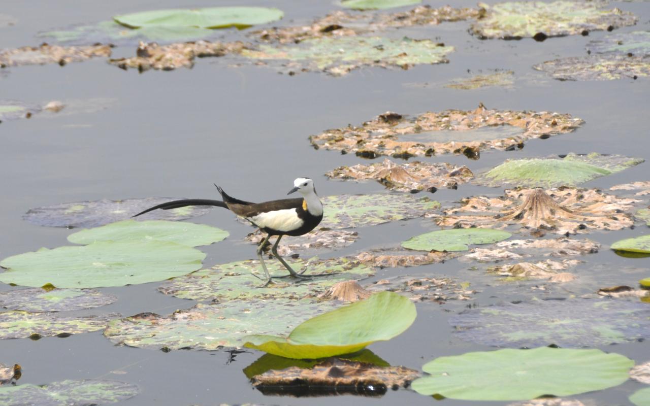 Większość ptaków jest długonoga, przystosowana do brodzenia po wodzie. Chociaż widzę, że większość zamiast brodzić, chodzi sobie po okrągłych liściach lotosu, które pokrywają powierzchnię jeziora. I te kolory! Kolory są wyraziste, ostre, inne niż u nas w kraju. Takie ptasie ZOO w naturze.