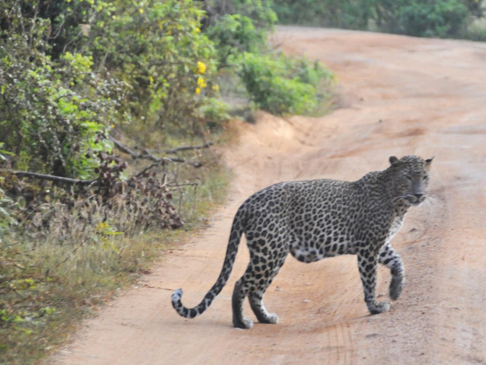 Dojeżdżamy do drogi, gdzie stoi kilka samochodów. Podobno widziany był tutaj kotek. Duży kotek. Leopard.