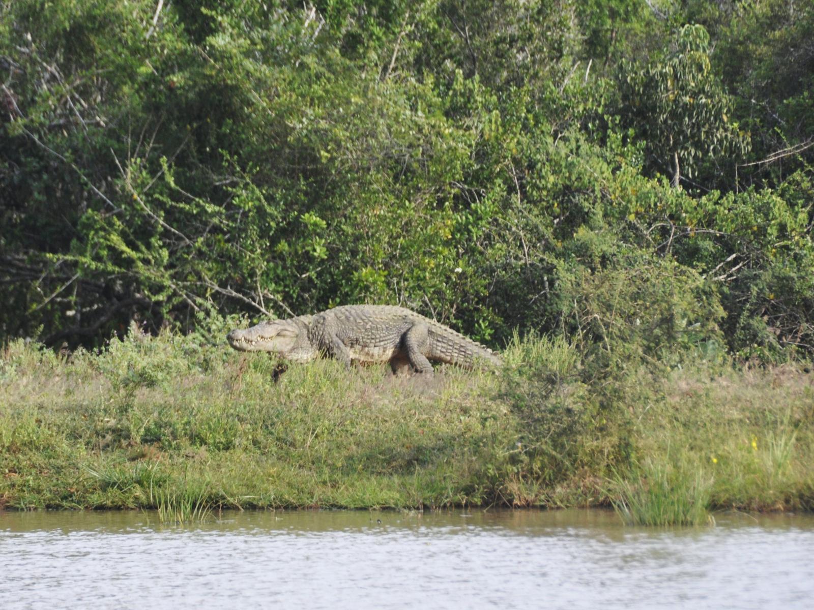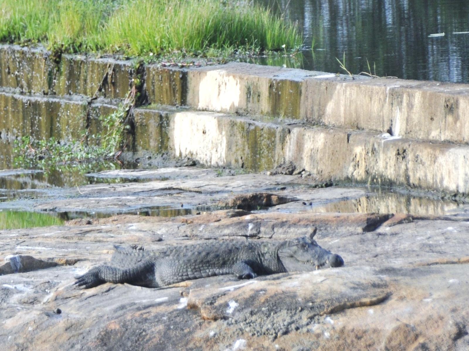 Jedziemy dalej. Nad jezioro. Może będą krokodyle... Są, wylegują się na słoneczku. Niestety, dosyć daleko, więc wychodzę z samochodu i podchodzę bliżej. Kierowca coś mówi. Coś mówi, to niech mówi, pewnie ostrzega, ale ja uważam, nic mi nie będzie.