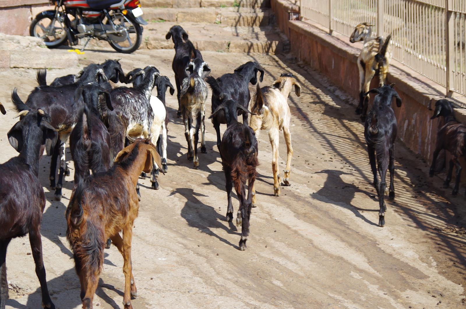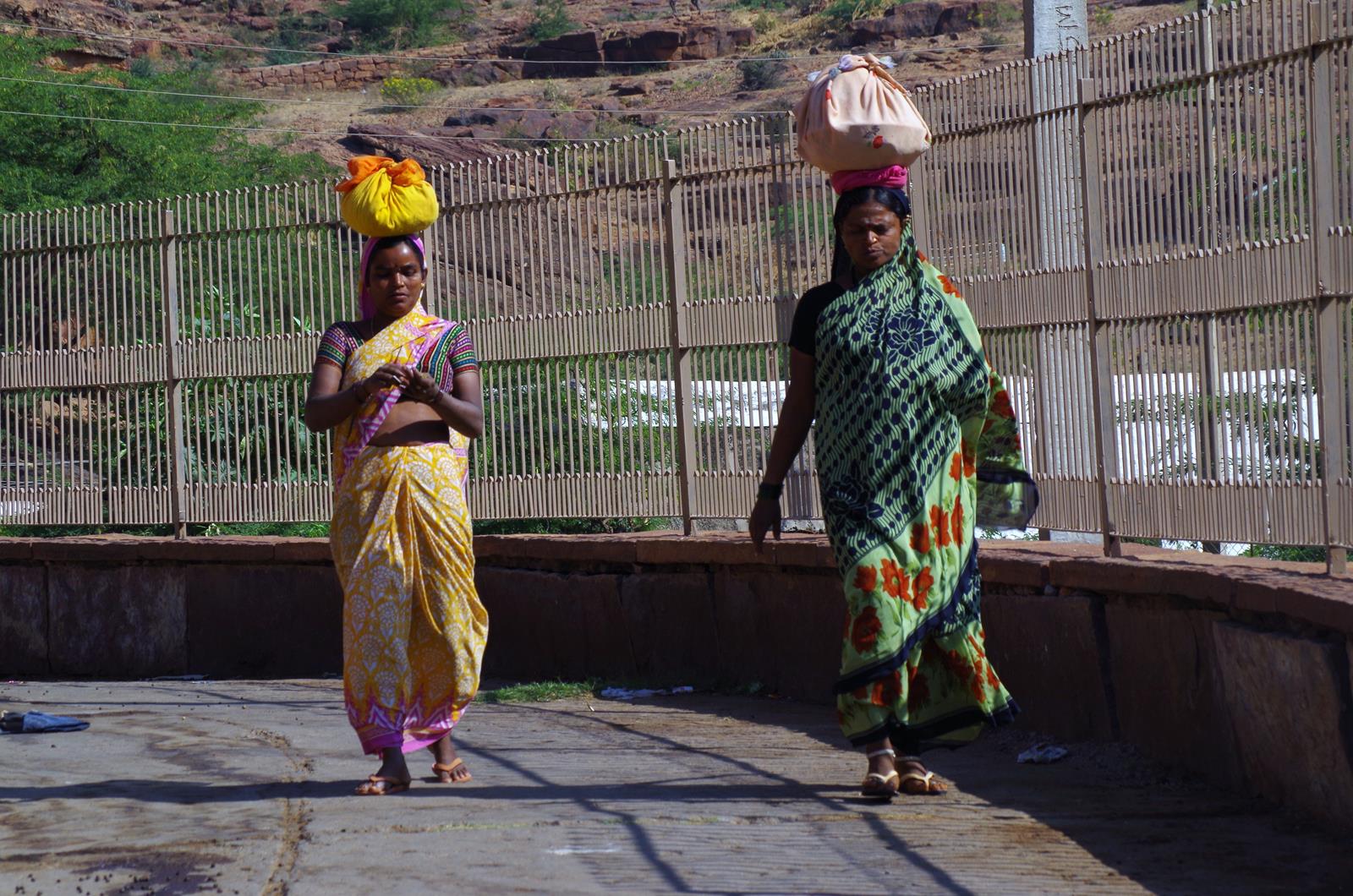 Gdy tylko wyszliśmy z głównej ulicy miasta, od razu znajdujemy się w innym świecie. Jest czysto, co jest rzeczą nieoczekiwaną. Płacimy po 100 rupii za wstęp i przed nami schody wyrąbane w czerwonych skałach piaskowcowych, prowadzące do znajdujących się na górze jaskiń.