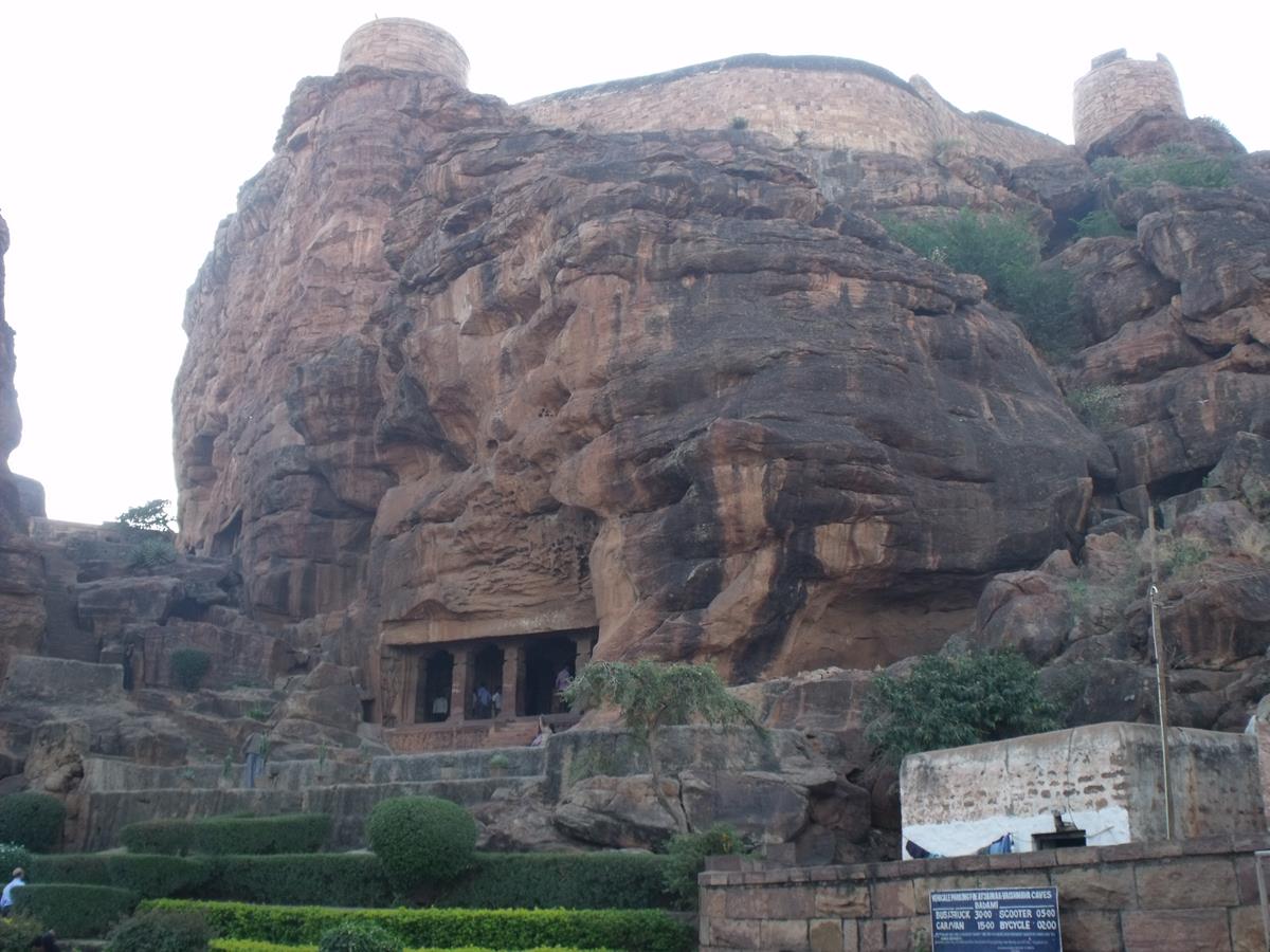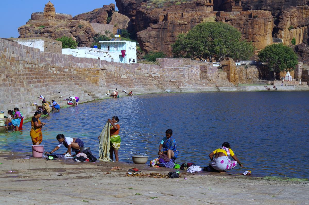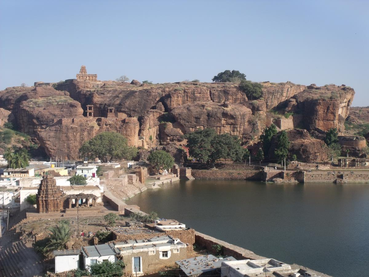 Intryguje nas jezioro i grobla, a na niej posadowione budowle, w przewodniku wyczytałam, że zostały zbudowane w tym samym okresie w którym dekorowano groty, kiedy miejsce to było stolicą panującej wówczas dynastii Calukjów.
