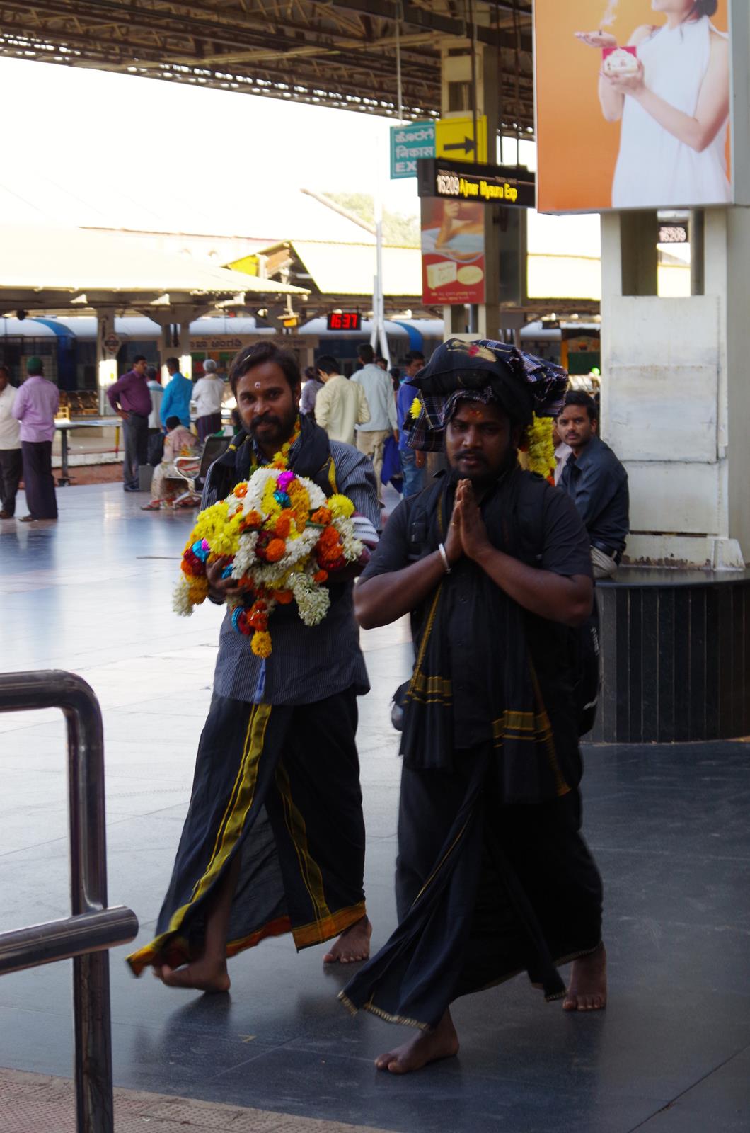 Jest ciemno a cały peron zajęty jest przez bezdomnych śpiących wprost na betonie. W kasie dowiaduję się, że do miejscowości Palolem (gdzie chcemy dojechać) można dostać się tylko autobusem, ale dworzec autobusowy jest oddalony około 5 km.