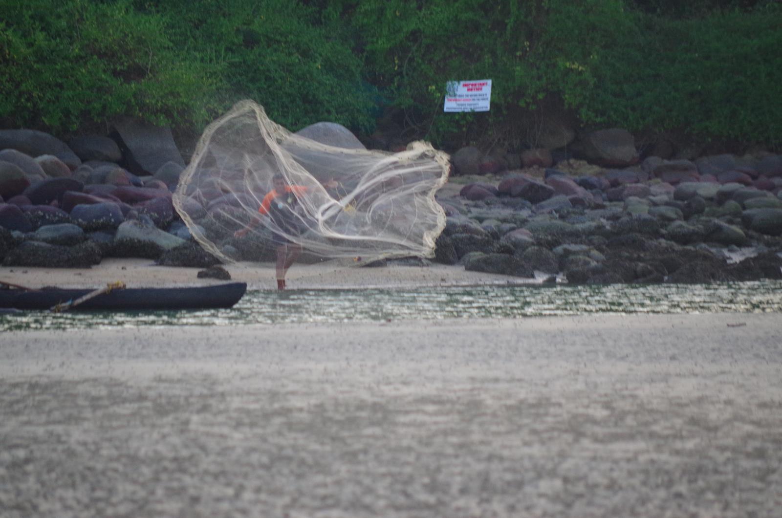 Cały dzień spędzamy na plaży i na spacerach. Pod wieczór idziemy zobaczyć zachód słońca. Po drodze widzę w oddali bawiące się delfiny, fantastyczny widok. Przy brzegu miejscowy rybak łowi na sieć rzucaną z ręki.
