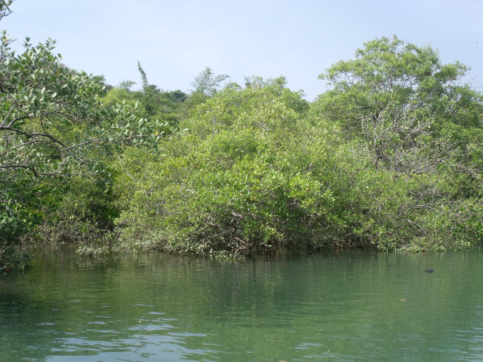 Skały widzimy raczej rzadko, stoki górskie pokryte są roślinami, dominuje zieleń oraz biało żółte kolory kwiatów. Rzekę przy ujściu otaczają drzewa mangrowe.