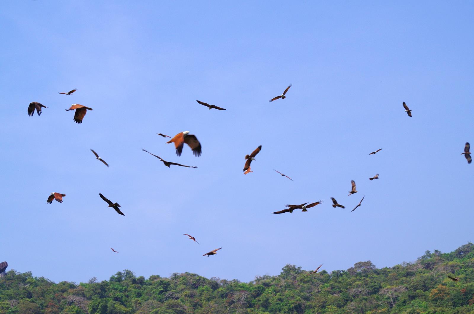 Na skałach i gałęziach drzew widzimy coraz więcej orłów. Jest ich tutaj dwa gatunki, orzeł brązowy i biały.