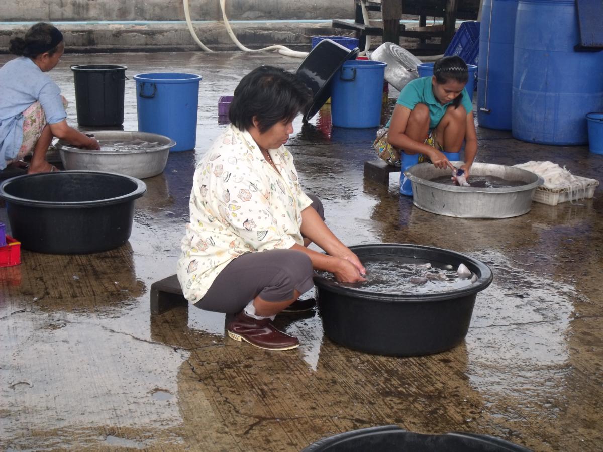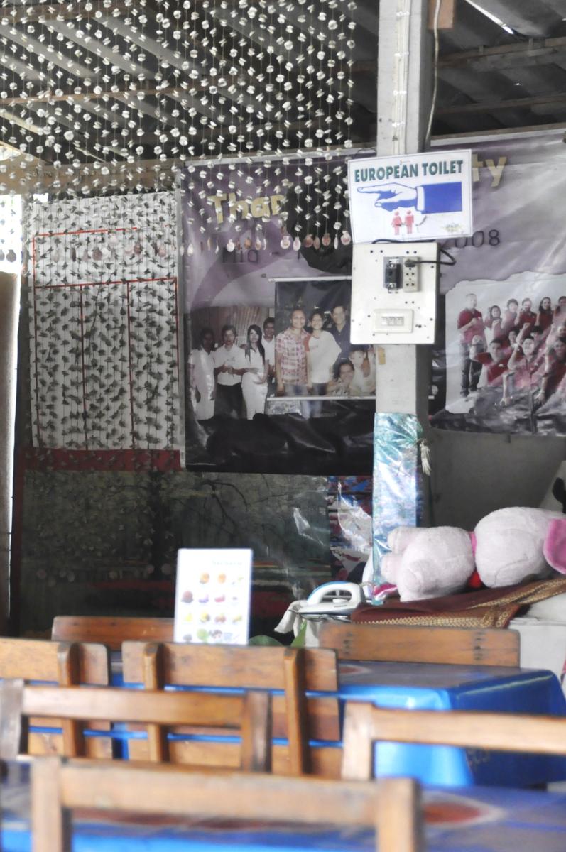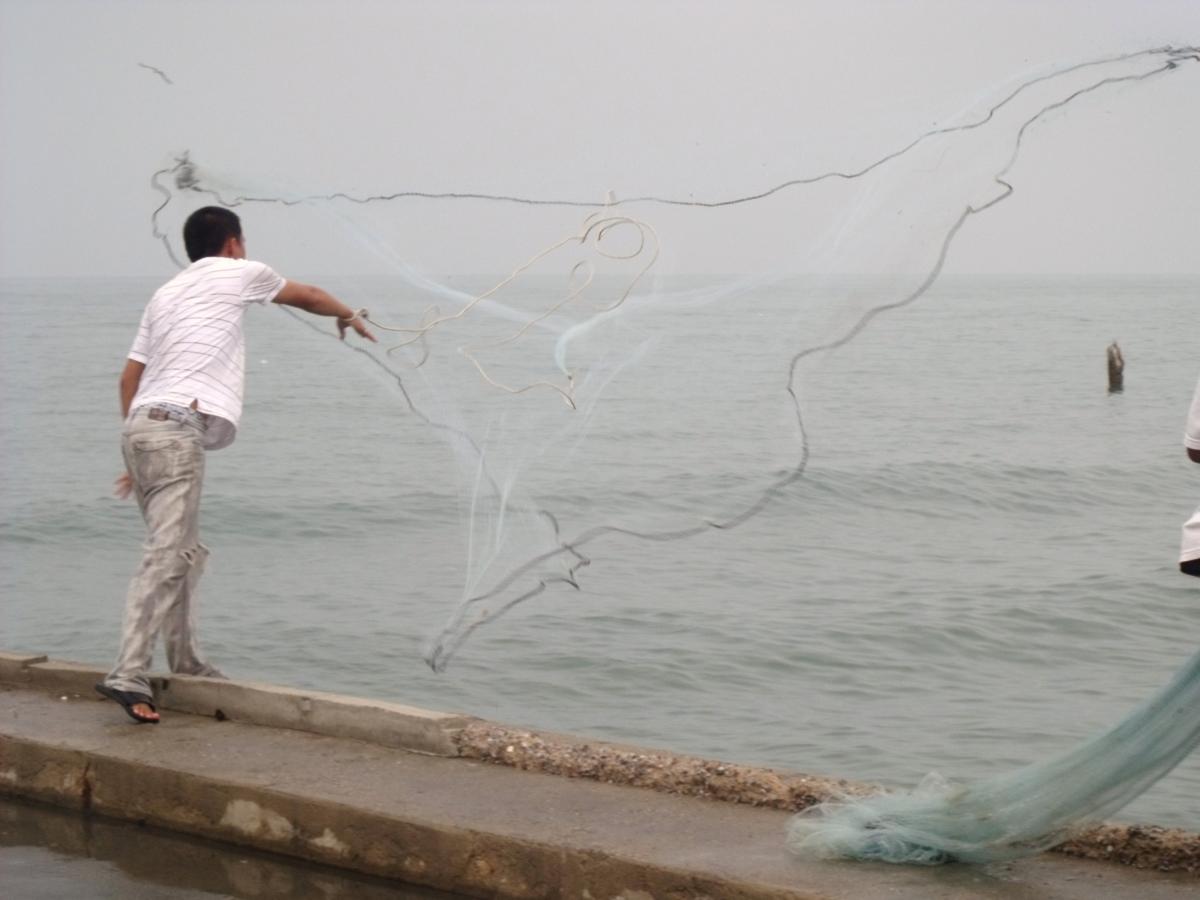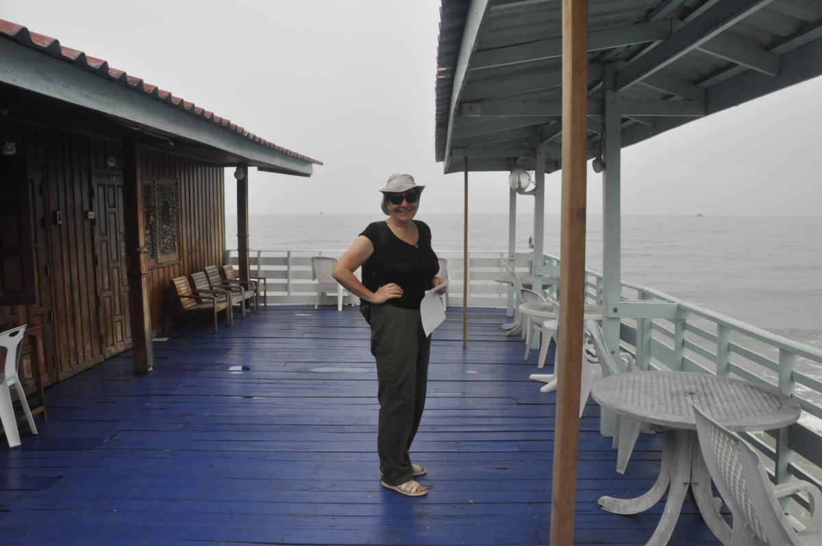 Wzdłuż wybrzeża jest wiele takich zabudowanych budowli na palach, większość z nich to hotele i restauracje. Znaleźliśmy jedno molo betonowe nie zabudowane, na którym łowią siecią i na wędki. Koło mola miejscowe kobiety oczyszczały złowione przez rybaków owoce morza.