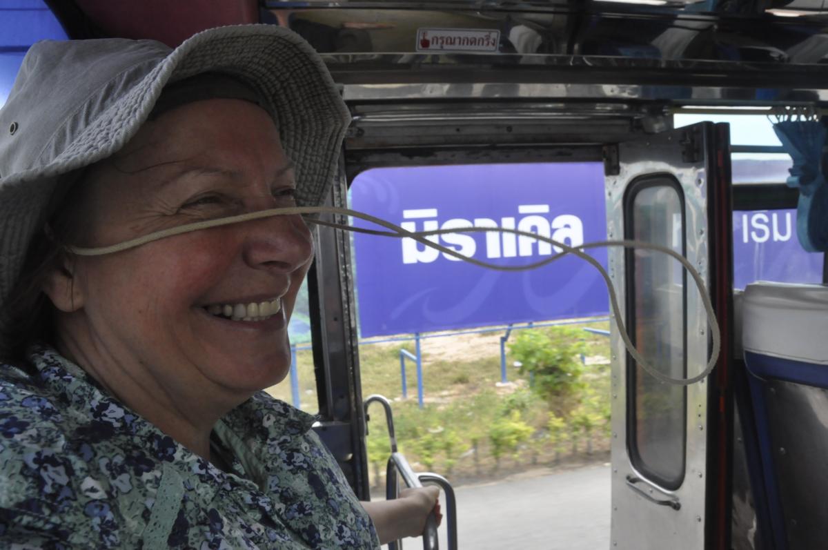 Przewodnik po Tajlandii, który ze sobą zabrałam rekomendował plażę w CHA AM jako jedną najbardziej atrakcyjnych w okolicy. Pojechaliśmy tam miejscowym autobusem – landarą, którym pan kierowca tak jechał jakby startował w formule 1. Miałam nadzieję, że złom którym jechaliśmy wytrzyma. Dodatkową atrakcją było to, że wszystkie okna i drzwi były otwarte, więc wyjść awaryjnych w razie potrzeby było wiele.