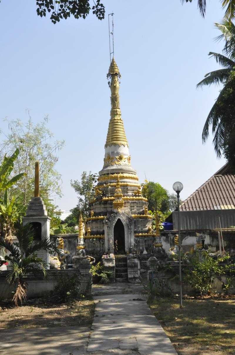 Po naradzie stwierdzamy, że z powodu nasilającego się gorąca weźmiemy tuk tuka. Pojechaliśmy do Wat Prha Kaewdontao, a następnie poszliśmy zobaczyć resztkę starych murów miejskich.