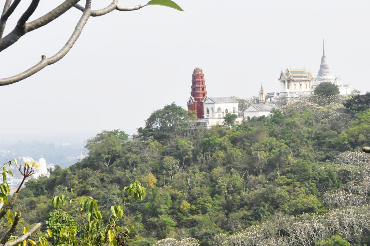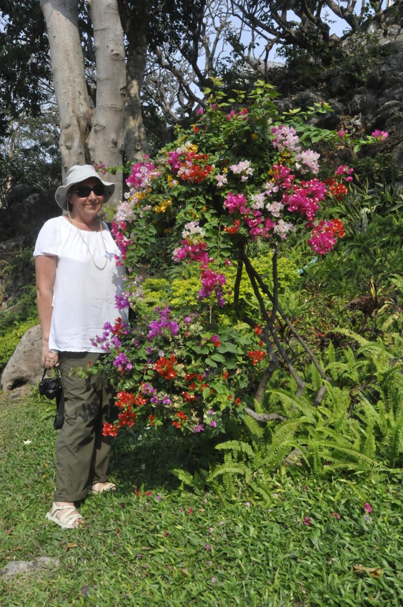 Tuż nad naszym hotelem, na wzgórzu znajdował się pałac królewski. Poszliśmy obejrzeć nie tyle sam pałac ale jego otoczenie, przede wszystkim piękny ogród widoczny z dołu. Wnętrza pałacu i różnych przyległych pawilonów, raczej biedne i siermiężne, ale otaczający go ogród bardzo ładny. Duża ilość kwitnących storczyków, pnących róż, clematisów i kaktusów powoduje, że miejsce to staje się magiczne.(Zakaz palenia pod karą 2 tys batów - chodzi o pieniądze) Niestety nie spodobałam się jednej z małp, która postanowiła odebrać mi plecak,( nie chciała odebrać, ale zajrzeć...) tylko dzięki szybkiej interwencji strażnika uniknęłam pogryzienia i podrapania.