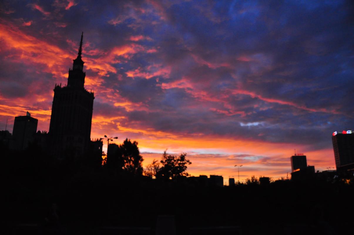 Warszawa przywitała nas słoneczną pogodą, co dało się odczuć i uwiecznić szkiełkiem aparatu. Niebo w centrum płonęło zachodem słońca, gdzie pośród bloków i dworca stoi gotowa do startu rakieta PKiN. Ale coś nie startuje. Może za kilkanaście lat w końcu zabudują tego paszteta albo odleci do domu.