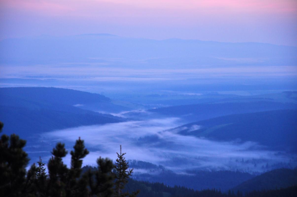 Wychodzimy z lasu i w końcu jesteśmy w kosówce. Ptaszki budzą się do życia, wszystko pachnie świeżością i poranną rosą. Informuję, że jeszcze parę metrów i będziemy na górze i będzie kawa! Widząc szczyt i powoli zmieniające się barwy nieba tnę kosówki jak kozica. Już jestem u celu. Widok zapiera nam dech w piersiach.