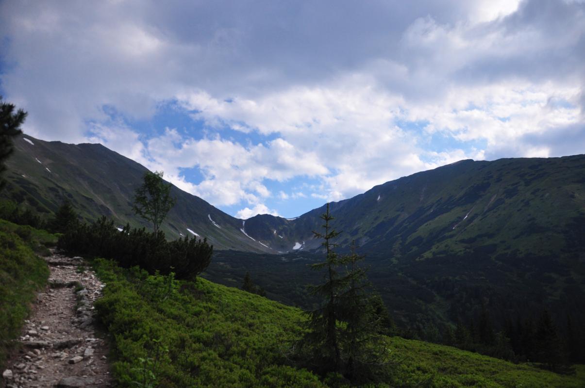 Podejście pod Trzydniowiański zajmuje podobno optymalnie 2h 15 minut, więc idę lekkim krokiem. Mijam lasek, prześwit, znowu trochę pod górkę lasem i w końcu kosówka. Przed podejściem za mostkiem mijam pana Krzysztofa poznanego wczorajszego wieczora. Zapytuję, czy warto tam iść. On się uśmiecha grymasem i stwierdza, ze raczej nie pożałuję. Pozdrawiamy się i cisnę do góry a kopytka same prowadzą. Podejście bardzo miłe, widokowe, zwłaszcza, że mam ładną pogodę.