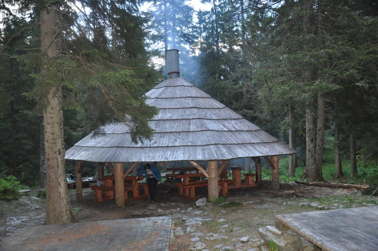 Taborisko jest puste. Oprócz nas nie ma jeszcze nikogo. Rozkładamy bambetle, jemy posiłek i oglądamy okolice obozowiska. Pod daszkiem jest palenisko, ławki, apteczka. Ktoś zostawił jakieś zupki i makaron więc my też dorzucamy coś od siebie do spiżarki i apteczki.