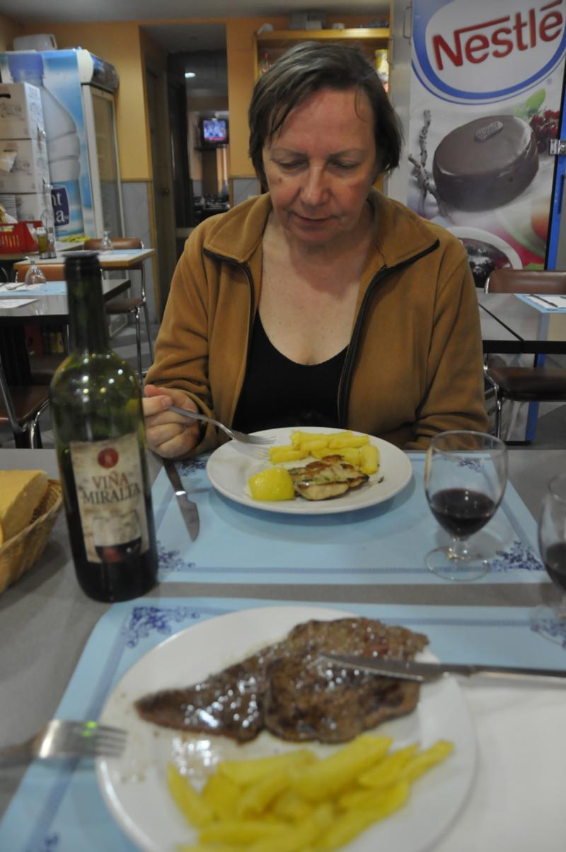 Restauracji szukamy w Barcelonecie, wchodzimy w boczną uliczkę i przeglądamy oferty. Wkrótce znajdujemy niewielką restaurację, gdzie je wielu miejscowych, ceny są niskie więc zostajemy. Przypadkiem znaleźliśmy miejsce, gdzie można zjeść pełny obiad z butelką wina (na dwie osoby) za 9 €, a przy tym jedzenie jest smaczne i jest wybór.